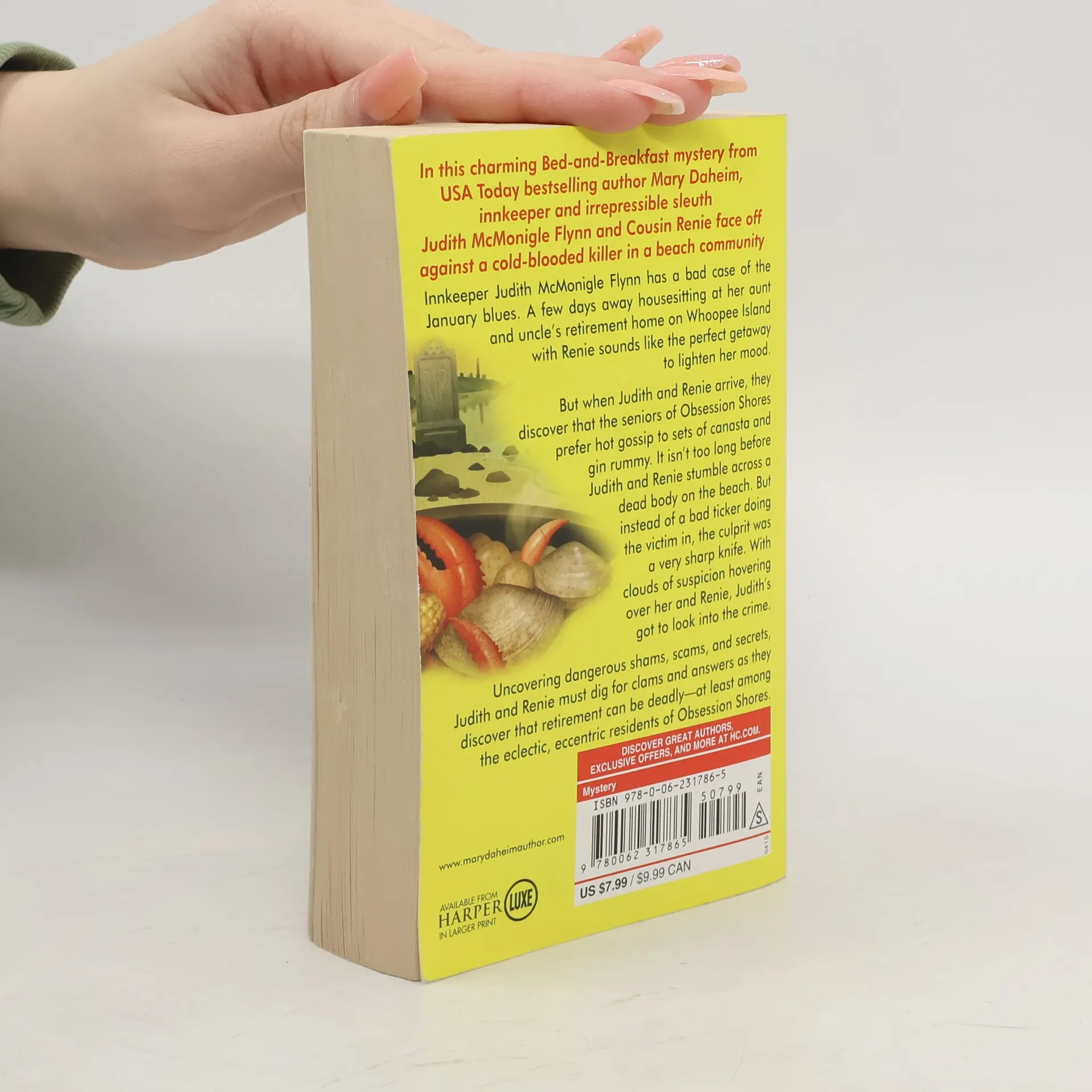Innkeeper and irrepressible sleuth Judith McMonigle Flynn and cousin Renie face off against a cold-blooded killer in a beach community in this delightfully charming Bed-and-Breakfast mystery from USA Today and New York Times bestselling author Mary Daheim.With the holidays gone and Hillside Manor almost empty, Innkeeper Judith McMonigle Flynn has a bad case of the blues. A housesitting stint at her aunt and uncle's retirement home on Whoopee Island with cousin Renie seems like the ideal pick-me-up. Surrounded by retirees in the off-season sounds peaceful and pleasant--or so the duo thinks. But it isn't long before a dead body pops up in their vicinity. Not surprising in an area full of older folks--until they learn it wasn't a bad ticker that did in the victim, but a very sharp knife. With clouds of suspicion hovering over her and Renie, Judith reluctantly begins sleuthing--if only to prove they didn't commit the crime.But what she finds is puzzling. The victim reputedly didn't have an enemy in the world--except for the killer. Digging for clams and answers, the cousins discover that retirement can be deadly--at least among the eclectic, eccentric residents of Obsession Shores.