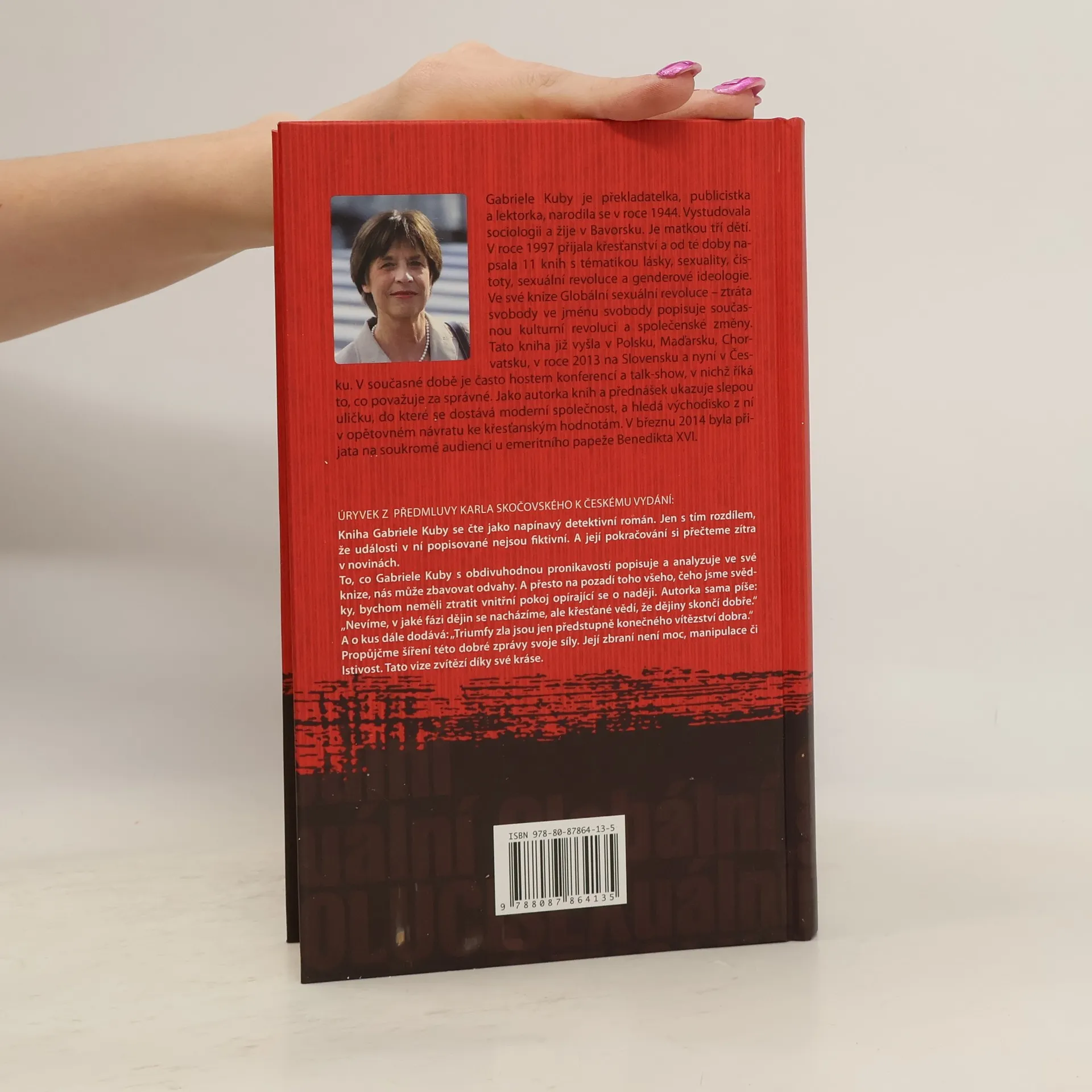 Publikace analyzuje současnou situaci a příčiny útoků na tradiční rodinu a celou společnost. Knihu by si měli přečíst učitelé, politici, kněží a každý, kdo chce znát jasnou argumentaci v oblasti rodinné etiky, objasňující nebezpečí gender ideologie a homosexualismu. Kniha paní Kuby se snaží otevírat lidem oči, aby viděli a pochopili dnešní vývoj společnosti. Globální sexuální revoluce je tu poprvé představena v souvislostech: myšlenkoví průkopníci od dob Francouzské revoluce, obrat od feminismu k gender-ideologii, strategické globální prosazení gender-ideologie v prostředí OSN, EU a národních vlád. Politické znásilnění jazyka, epidemické rozšíření pornografie, zrušení všech morálních norem. Platí to, o čem hovoří podtitul knihy: všechno se nabízí jako svoboda, přitom ale vede k jejímu zničení.“ Kniha popisuje současnou kulturní revoluci a společenské změny. Ukazuje slepou uličku, do které se dostává naše dnešní společnost a hledá východisko z ní.