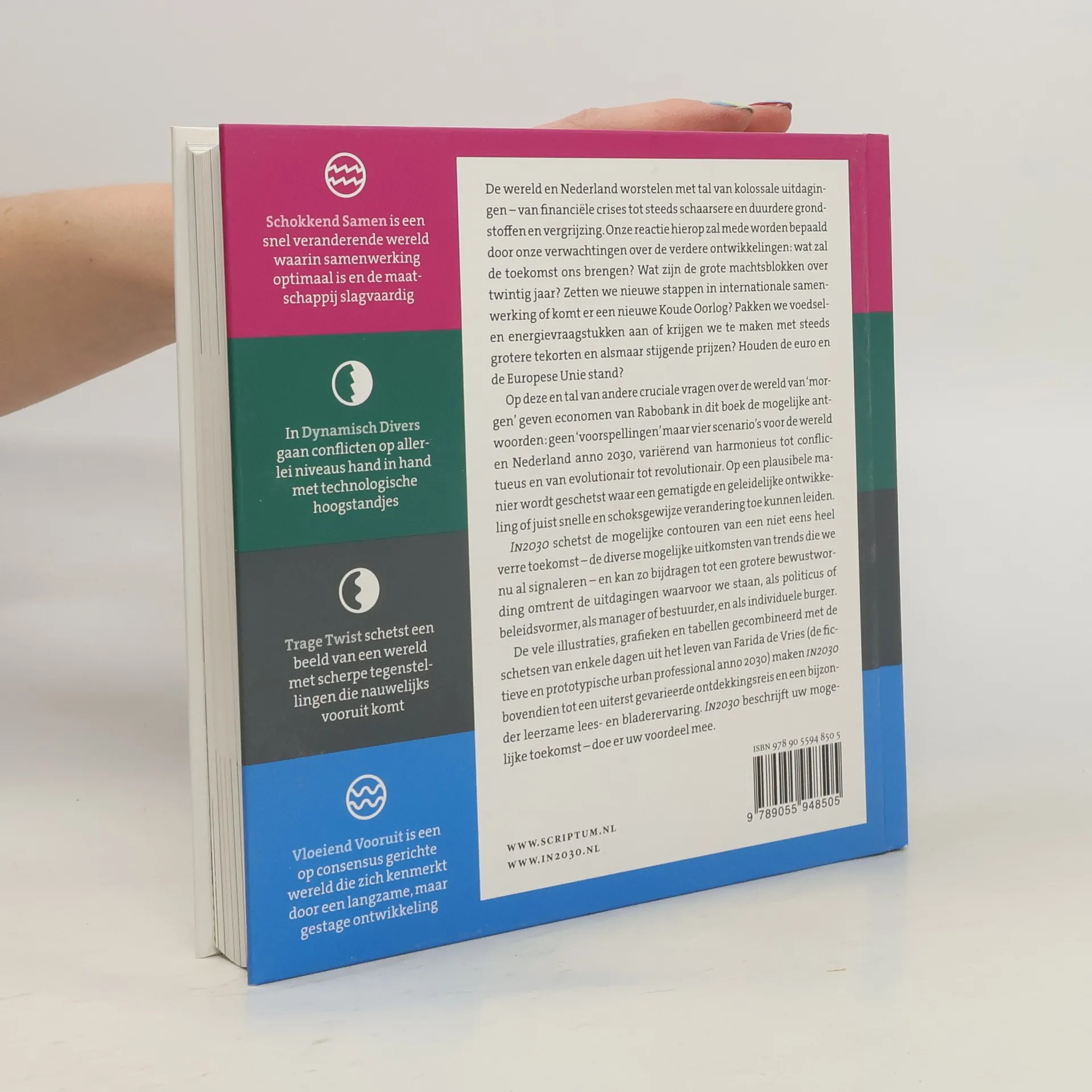 Vier toekomstscenario's voor de ontwikkeling van de mondiale economie, met de effecten op wonen, werken, mileu, financiën etc.