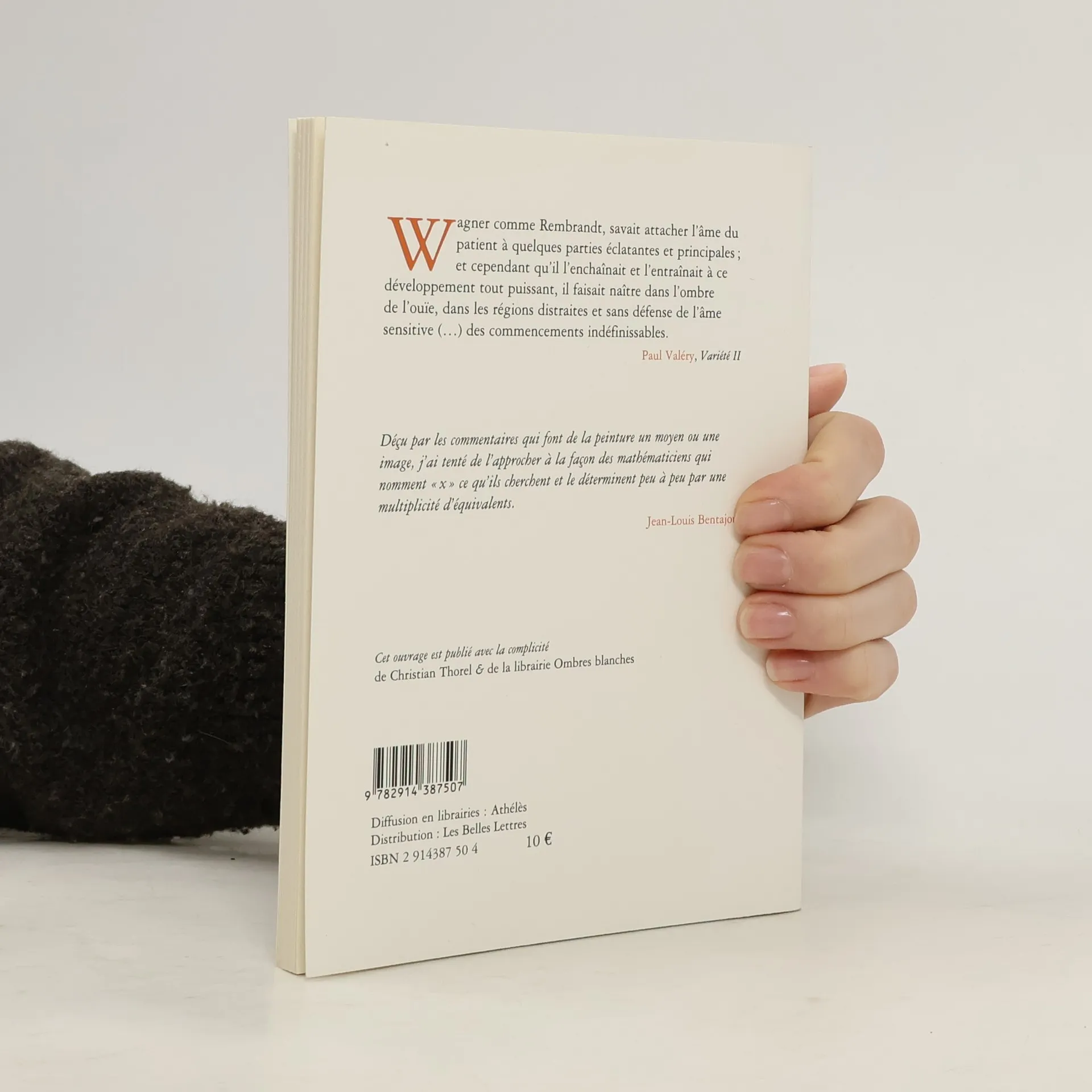 " Wagner comme Rembrandt, savait attacher l'âme du patient à quelques parties éclatantes et principales ; et cependant qu'il l'enchaînait et l'entraînait à ce développement tout puissant, il faisait naître dans l'ombre de l'ouïe, dans les régions distraites et sans défense de l'âme sensitive [...] des commencements indéfinissables. " (Paul Valéry, Variété II) Déçu par les commentaires qui font de la peinture un moyen ou une image, j'ai tenté de l'approcher à la façon des mathématiciens qui nomment " x " ce qu'ils cherchent et le déterminent peu à peu par une multiplicité d'équivalents. (Jean-Louis Bentajou)