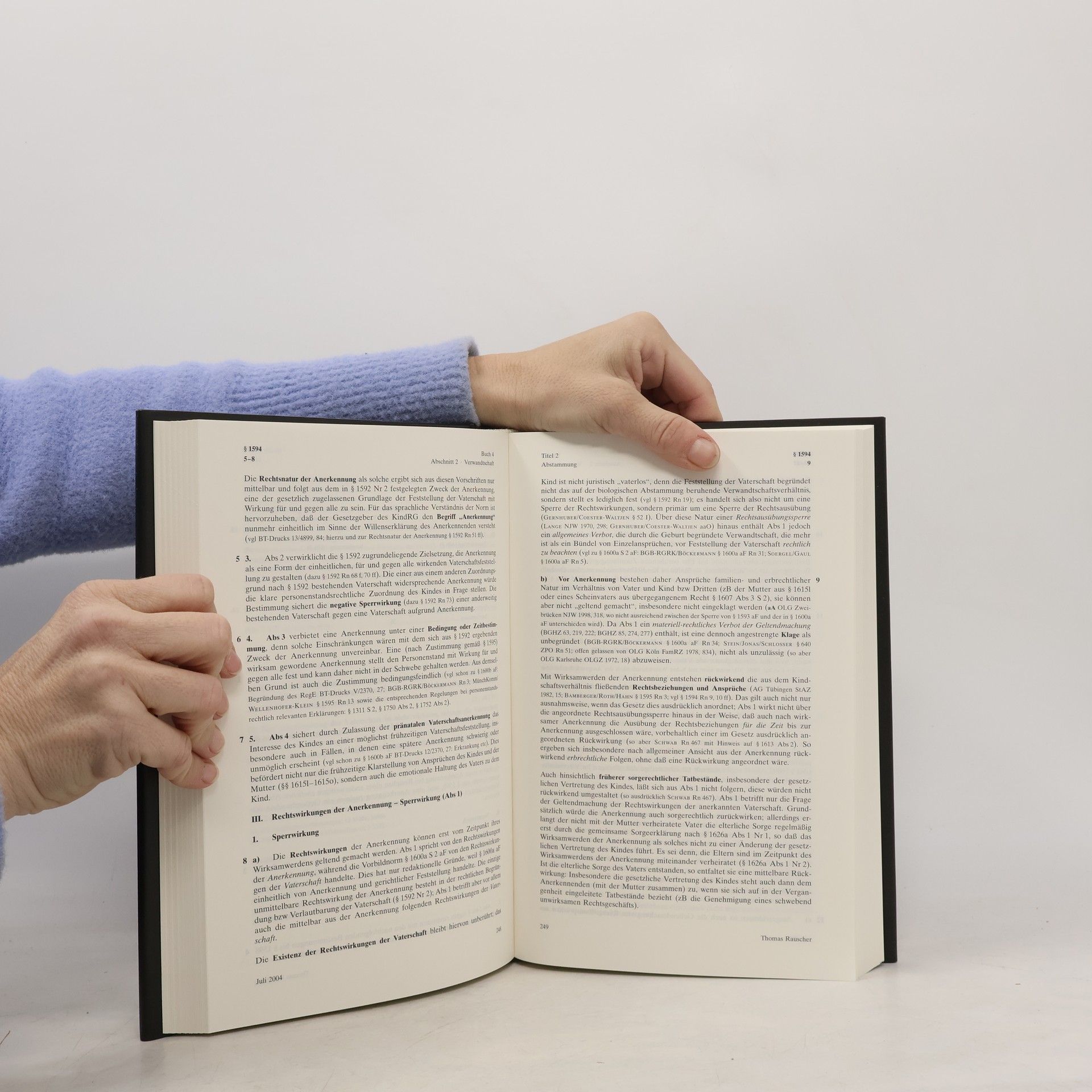 Die Neubearbeitung bringt das Abstammungsrecht auf den Stand von Juni 2004. Neben zahlreichen Streitfragen, die seit der Neufassung durch das KindRG die Gerichte besch�ftigen, waren einige Gesetzes�nderungen, insbesondere der Anfechtungsausschluss bei konsentierter heterologer Insemination sowie das - noch immer eingeschr�nkte - Anfechtungsrecht des biologischen Vaters zu ber�cksichtigen. Die Kommentierung nimmt auch Stellung zu neuen rechtspolitischen Herausforderungen wie heimlichem Vaterschaftstest, anonymer Geburt und einer umfassenden gesetzlichen Regelung der artifiziellen Befruchtung.