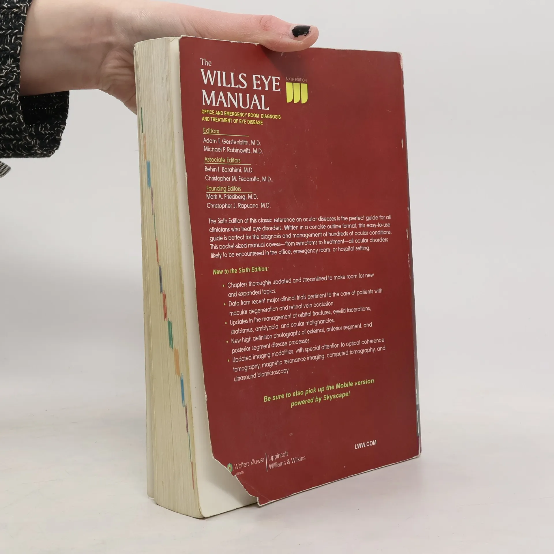 Completely revised, this 6th edition of The Wills Eye Office And Emergency Room Diagnosis And Treatment Of Eye Disease is the perfect guide for all clinicians who treat eye disorders. Written in a concise outline format, this easy-to-read, pocket-sized reference is perfect for diagnosis and management of hundreds of ocular conditions. From symptom to treatment it covers every ocular disorder likely to be encountered in an office, emergency room, or hospital setting. Yet even though it’s small enough to fit in a pocket, this book provides the most accurate and current information on over 200 ophthalmic conditions. It even includes the results of some of the most recent major clinical trials — including those related to the care of patients with macular degeneration and retinal vein occlusion. NEW TO THE SIXTH · Chapters thoroughly updated and streamlined to make room for new and expanded topics · Recent major clinical trials data included on care of patients with macular degeneration and retinal vein occlusion · Updates in the management of orbital fractures, eyelid lacerations, strabismus, amblyopia, and ocular malignancies · New high definition photographs of external, anterior segment, and posterior segment disease processes · Imaging modalities updated, especially optical coherence tomography, magnetic resonance imaging, computed tomography, and ultrasound biomicroscopy