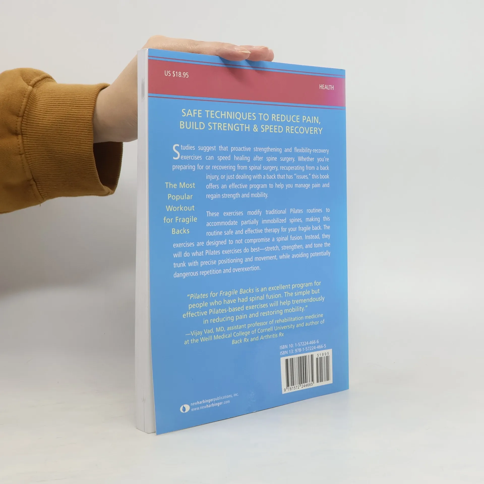 Safe Techniques to Reduce Pain, Build Strength, and Speed RecoveryStudies suggest that proactive strengthening and flexibility-recovery exercises can speed healing after spine surgery. Whether you're preparing for or recovering from spinal surgery, recuperating from a back injury, or just dealing with a back that has 'issues,' this book offers an effective program to help you manage pain and regain strength and mobility.These exercises modify traditional Pilates routines to accommodate partially immobilized spines, making this routine safe and effective therapy for your fragile back. The exercises are designed to not compromise a spinal fusion. Instead, they will do what Pilates exercises do best-stretch, strengthen, and tone the trunk with precise positioning and movement, while avoiding potentially dangerous repetition and overexertion.Pilates for Fragile Backs is an excellent program for people who have had spinal fusion. The simple but effective Pilates-based exercises will help tremendously in reducing pain and restoring mobility. -Vijay Vad, MD, assistant professor of rehabilitation medicine at the Weill Medical College of Cornell University and author of Back Rx and Arthritis Rx…Adhering to a program of Pilates, as described in Pilates for Fragile Backs, under the guidance of a certified instructor can be a most useful means to improve back function and relieve pain. Clearly, this is a valuable therapeutic modality that is underutilized in today's current pain management programs associated with spinal disorders.-Charles Birbara, MD, chief of rheumatology at Worcester City Hospital in Worcester, MAIn my practice, I constantly emphasize the importance of proper spinal alignment, good posture and a strong mid-section. Pilates for Fragile Backs highlights these points in an easy-to-follow exercise program for patients suffering with chronic back pain. I have recommended this program to many of my patients, and they are thrilled with the results.-Anthony S. Rainka, DC, South County Chiropractic, Sutton, MAAs a physical therapist, I have been able to utilize the exercises in Pilates for Fragile Backs with my clients. They have shown a reduction in pain, an improvement in posture and balance, increased strength, and healthier muscle tone. Best of all, the program does wonders for their self-esteem.-Pam Craig-Stewart, PT, director of rehabilitation at Christopher House in Worcester, MAThis book is a much needed labor of love that offers clear and helpful advice for anyone who has ever lived with chronic back pain. The spine problems addressed in this book are very challenging ones for doctors and therapists alike, and the authors use their first hand experience with spinal trauma to break new ground for exercise therapy. A specifically modified Pilates program indeed offers the possibility of comfort and relief for a largely under-served group in our society.-Ellen Kiley, RYT, therapeutic yoga practitioner specializing in scoliosis and spinal fusionI underwent an anterior/posterior fusion (L4-S1) over a year ago due to degenerative disk disease with annular tears. Since then, Pilates has done wonders for me. I started pursuing basic lumbar stabilization mat work a couple of months following surgery. I had urged my neurosurgeon to allow me to begin sooner than usual because I'd had a big increase in pain. My physical therapist felt it had to do with the stiffness that begins to set in as the weeks go by without stretching and exercising. I had every confidence that Pilates would improve my situation and I swear by it! I've been back to work full-time. I am also walking about four miles, three days a week! I'm sure Pilates for Fragile Backs will be a major help to many others.-Diana Stahl, Cincinnati, OH