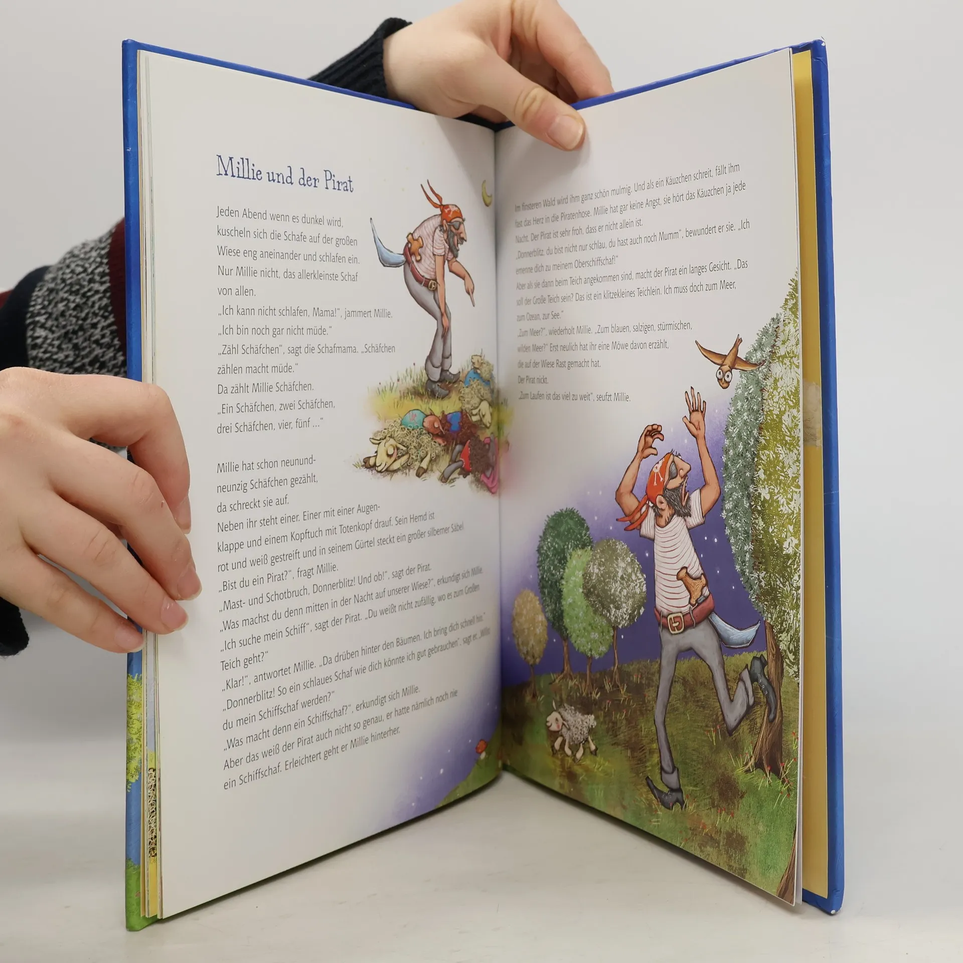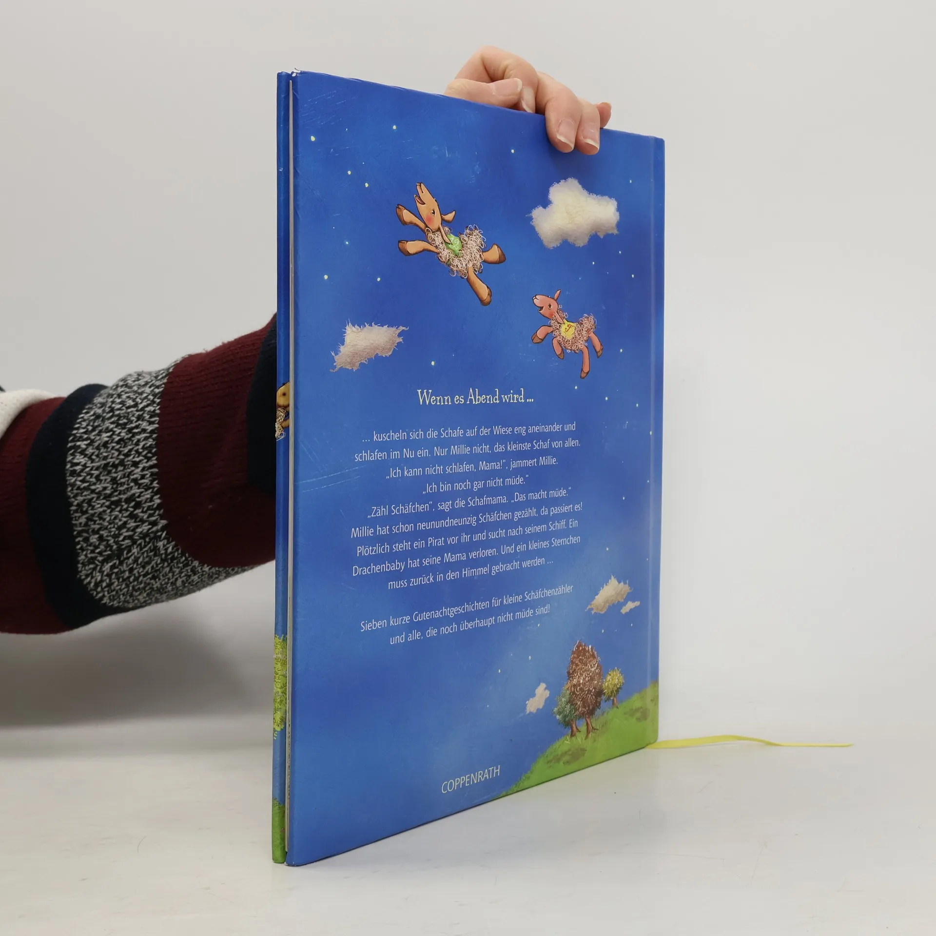 Wenn es Abend wird, kuscheln sich die Schafe auf der Wiese eng aneinander und schlafen im Nu ein. Nur Millie nicht, das kleinste Schaf von allen. „Ich kann nicht schlafen, Mama!“, jammert Millie. „Ich bin noch gar nicht müde.“ „Zähl Schäfchen“, sagt die Schafmama. „Das macht müde.“ Millie hat schon neunundneunzig Schäfchen gezählt, da passiert es! Plötzlich steht ein Pirat vor ihr und sucht nach seinem Schiff. Ein Drachenbaby hat seine Mama verloren. Und ein kleines Sternchen muss zurück in den Himmel gebracht werden …Sieben kurze Gutenachtgeschichten für kleine Schäfchenzähler und alle, die noch überhaupt nicht müde sind!