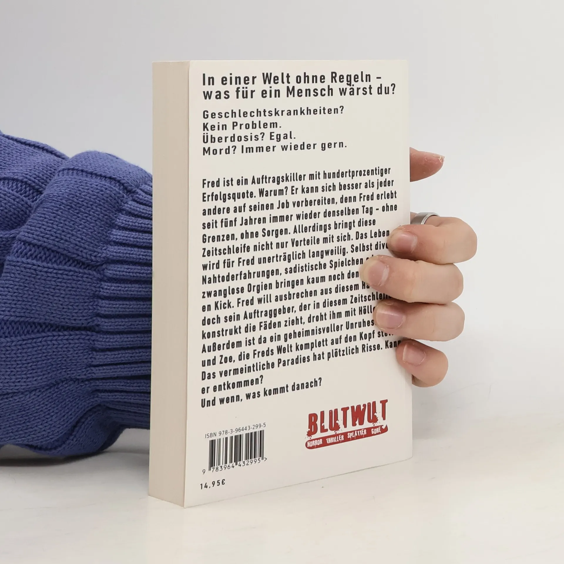 In einer Welt ohne Regeln – was für ein Mensch wärst du? Geschlechtskrankheiten? Kein Problem. Überdosis? Egal. Mord? Immer wieder gern. Fred ist ein Auftragskiller mit hundertprozentiger Erfolgsquote. Warum? Er kann sich besser als jeder andere auf seinen Job vorbereiten, denn Fred erlebt seit fünf Jahren immer wieder denselben Tag – ohne Grenzen, ohne Sorgen. Allerdings bringt diese Zeitschleife nicht nur Vorteile mit sich. Das Leben wird für Fred unerträglich langweilig. Selbst diverse Nahtoderfahrungen, sadistische Spielchen oder zwanglose Orgien bringen kaum noch den gewünschten Kick. Fred will ausbrechen aus diesem Hamsterrad, doch sein Auftraggeber, der in diesem Zeitschleifenkonstrukt die Fäden zieht, droht ihm mit Höllenqualen. Außerdem ist da ein geheimnisvoller Unruhestifter und Zoe, die Freds Welt komplett auf den Kopf stellt. Das vermeintliche Paradies hat plötzlich Risse. Kann er entkommen? Und wenn, was kommt danach?