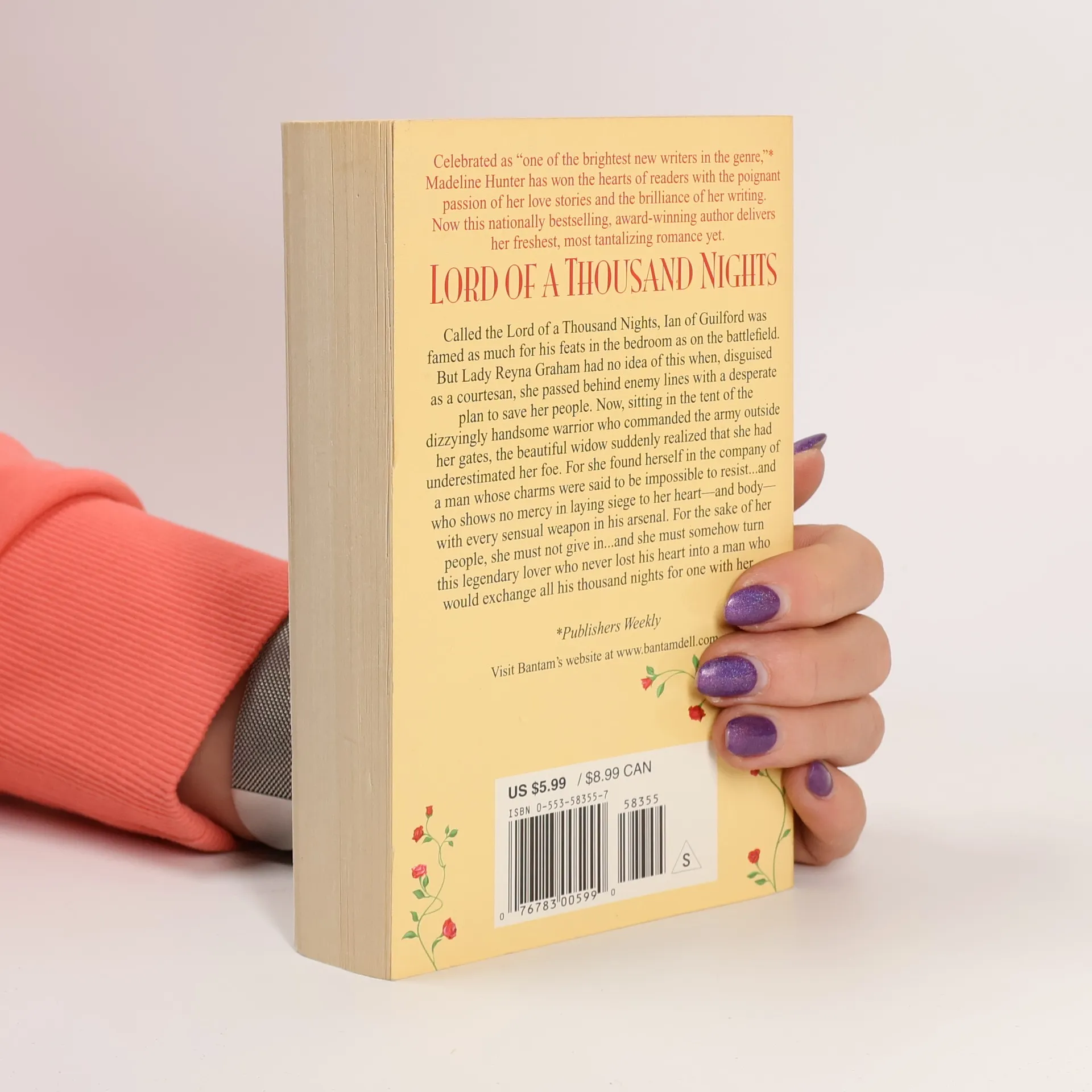 No woman alive could resist his tantalizing seduction....Celebrated as “one of the brightest new writers in the genre” (Publishers Weekly), Madeline Hunter has won the hearts of readers with the poignant passion of her love stories and the brilliance of her writing. Now this nationally bestselling, award-winning author delivers her freshest, most tantalizing romance yet...Called the Lord of a Thousand Nights, Ian of Guilford was famed as much for his feats in the bedroom as on the battlefield. But Lady Reyna Graham had no idea of this when, disguised as a courtesan, she passed behind enemy lines with a desperate plan to save her people.Now, sitting in the tent of the dizzyingly handsome warrior who commanded the army outside her gates, the beautiful widow suddenly realized that she had underestimated her foe.For she found herself in the company of a man whose charms were said to be impossible to resist...and who would show no mercy in laying siege to her heart—and body—with every sensual weapon in his arsenal.For the sake of her people, she must not give in ... and she must somehow turn this legendary lover who never lost his heart into a man who would exchange all his thousand nights for one with her....