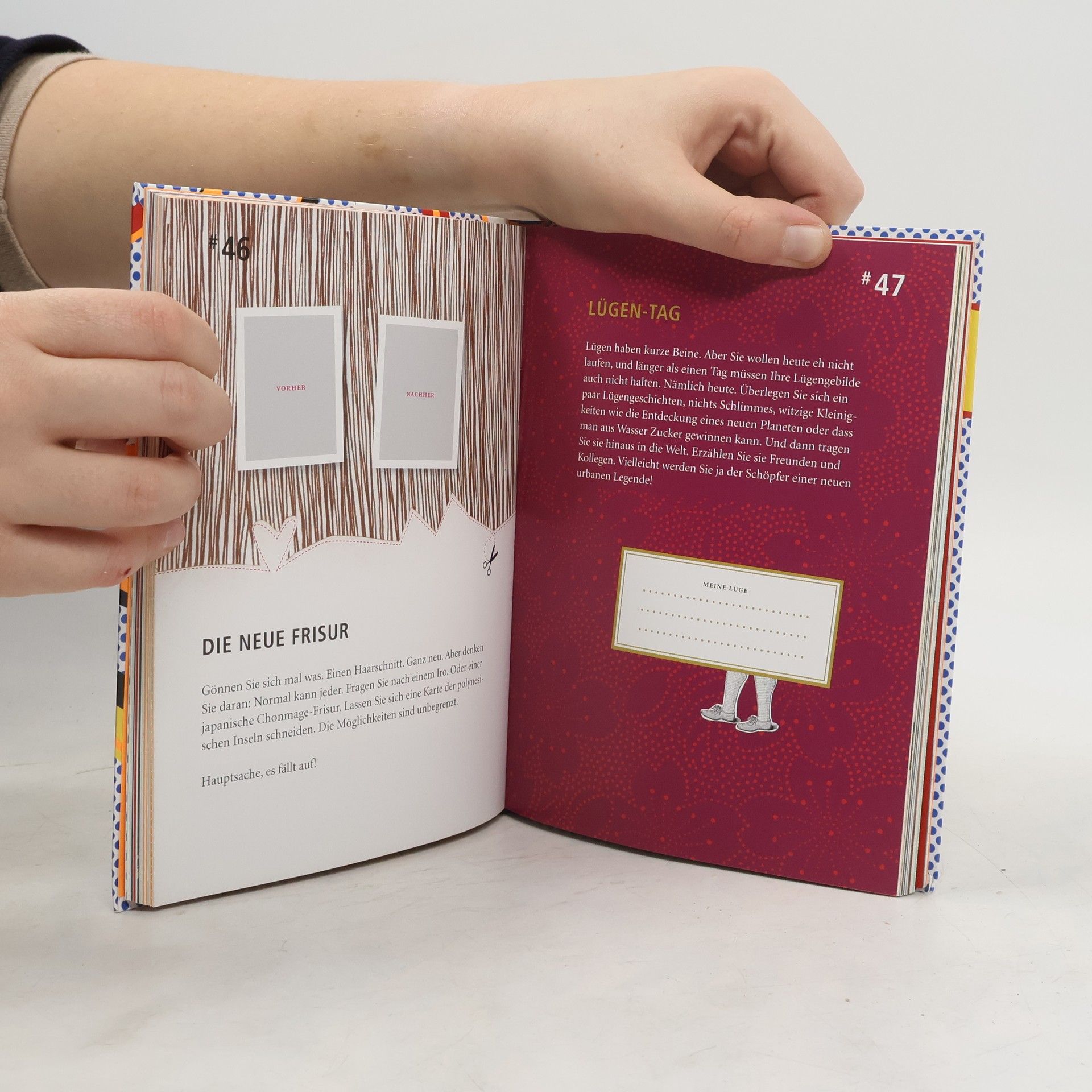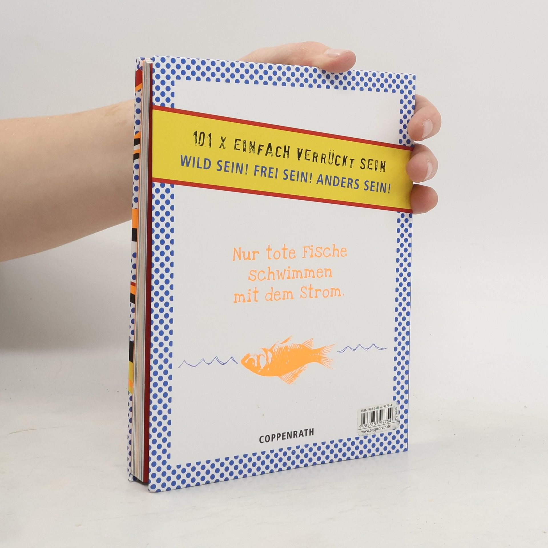 Das Leben ist langweilig ohne einen gewissen Grad an Verrücktheit! Und nur tote Fische schwimmen mit dem Strom. Dieses Buch liefert 101 abgefahrene Ideen, um etwas mehr Abwechslung und Spannung in den grauen Alltag zu bringen: Sprechen Sie heute mal nur in Reimen. Machen Sie einen Schwangerschaftstest, auch wenn Sie ein Mann sind – vielleicht überraschen Sie sich ja selbst! Holen Sie heute alles nach, was Sie als Kind nicht durften. Neben frechen Texten, Seiten zum Kopieren und Eintragseiten überzeugt das Buch durch die vielfältige Gestaltung: Jede Seite ist eine witzig illustrierte Welt für sich und bietet so viele Überraschungen wie der Text selbst. Der Einband in Flexo-Broschur ist wie der Innenteil mit Neon-Orange veredelt.