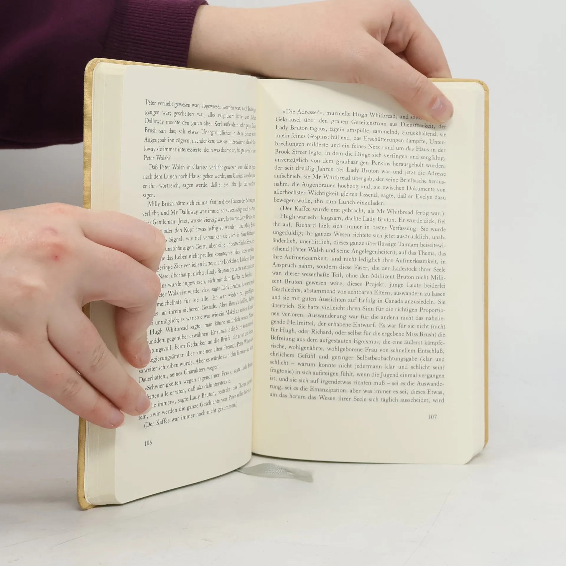 Clarissa Dalloway führt ein großes Haus im vornehmen Londoner Stadtteil Westminster. Eine ihrer glänzenden Soireen soll an einem Junitag des Jahres 1923 stattfinden. Der Ablauf dieses einen Tages bildet die Gegenwart des Romans, in die Clarissa durch die Stundenschläge des Big Ben immer wieder zurückgeholt wird. Denn die Ereignisse – Besorgungen, Vorbereitungen, Besuche und schließlich die Abendgesellschaft, die allen konventionellen Erwartungen entspricht – lösen Assoziationen aus, die sie zugleich in die Vergangenheit und in die Wirklichkeit ihres inneren Bewußtseins führen, die eigentliche Welt dieses Romans. In langen Erinnerungs- und Gedankenketten wird sie sich nach und nach der Brüche zwischen ihrer äußeren und ihrer inneren Existenz gewahr.