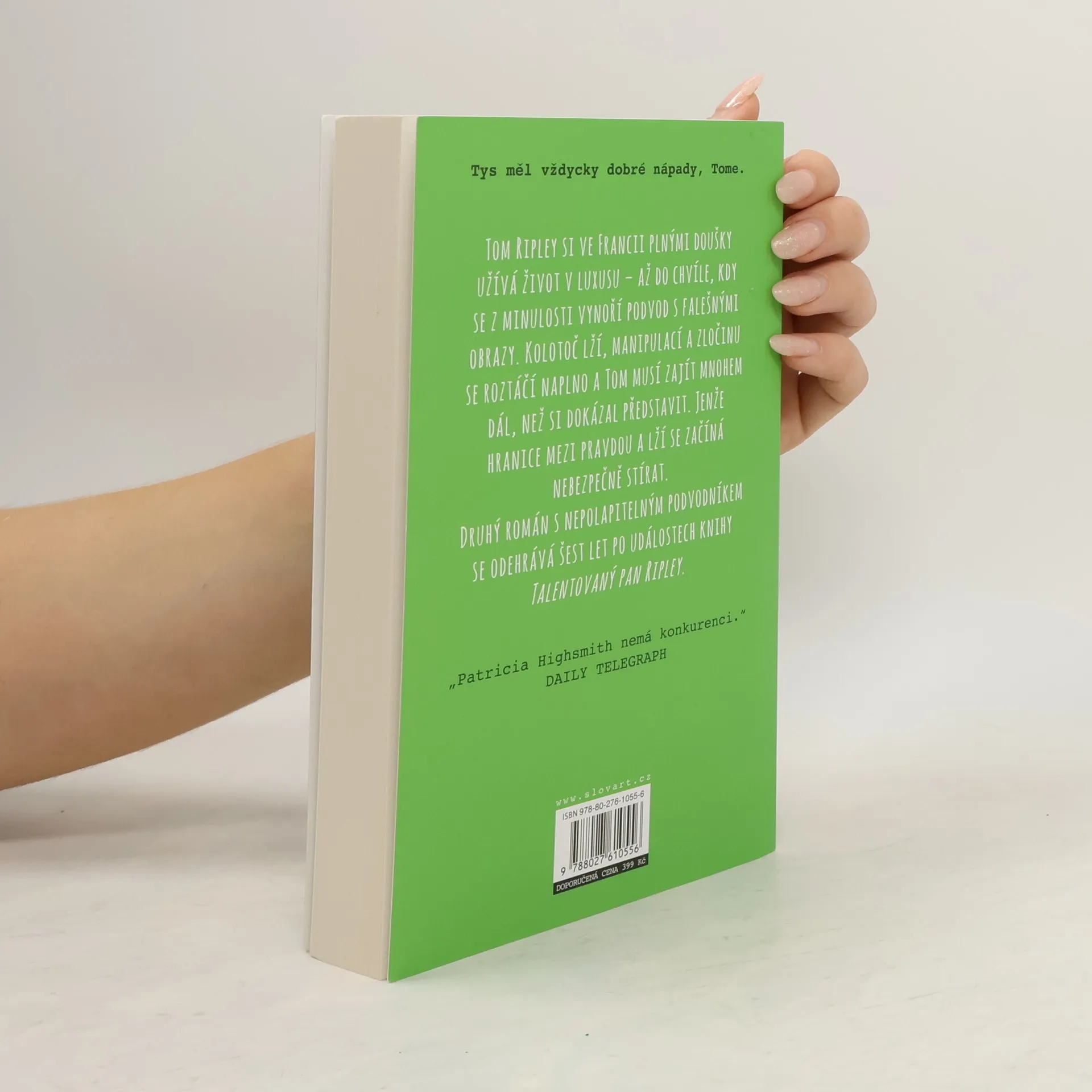 Tom Ripley si ve Francii plnými doušky užívá život v luxusu - až do chvíle, kdy se z minulosti vynoří podvod s falešnými obrazy. Kolotoč lží, manipulací a zločinu se roztáčí naplno a Tom musí zajít mnohem dál, než si dokázal představit. Jenže hranice mezi pravdou a lží se začíná nebezpečně rozplývat. Druhý román s nepolapitelným podvodníkem se odehrává šest let po událostech knihy Talentovaný pan Ripley.