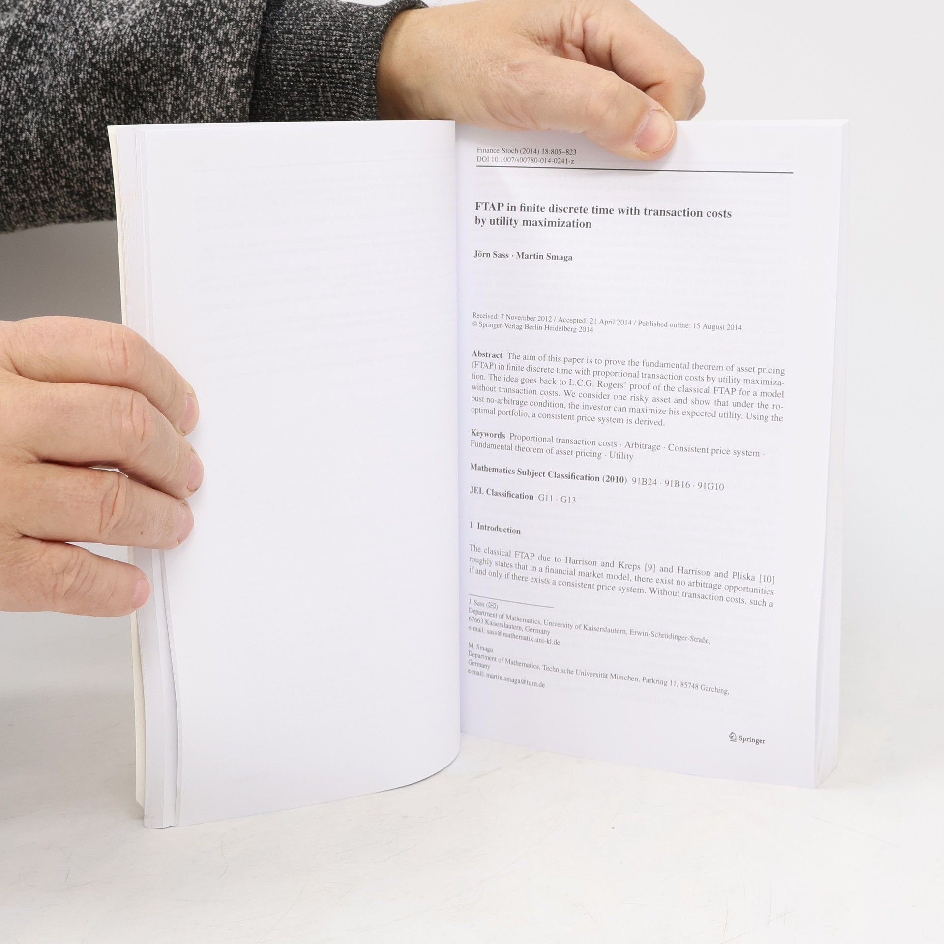 Finance and Stochastics, Collectif d'auteurs