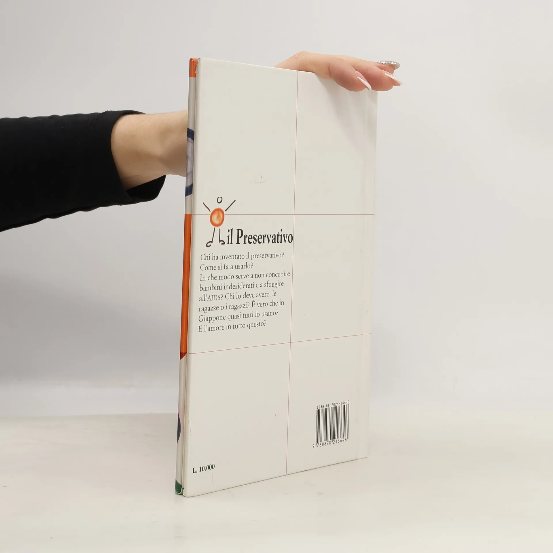 Chi ha inventato il preservativo? Come si fa ad usarlo? In che modo serve a non concepire bambini indesiderati e a sfuggire all'AIDS? Chi lo deve avere, le ragazze o i ragazzi? E' vero che in Giappone quasi tutti lo usano? E l'amore in tutto questo? (Dalla quarta di copertina).