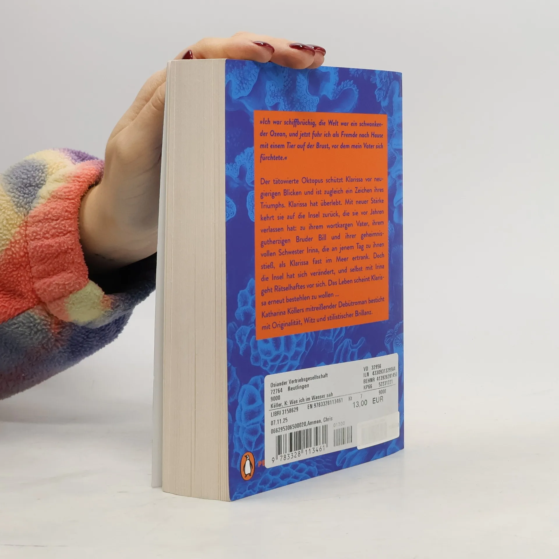<b>Über eine Frau, die ihr Leben in die Hand nimmt und eine aus den Fugen geratene Welt zu retten versucht: poetisch, sprachmächtig und bewegend</b> Der tätowierte Oktopus auf ihrer nunmehr flachen Brust schützt Klarissa vor neugierigen Blicken, und zugleich ist er ein Zeichen ihres Triumphs. Klarissa hat überlebt. Mit neuer Stärke kehrt sie auf die Insel zurück, die sie vor Jahren verlassen hatte: zu ihrem Vater, dem wortkargen Meister der Fischkunst, zu ihrem gutherzigen Bruder Bill und ihrer geheimnisvoll-schönen Schwester Irina, die an jenem Tag zu ihnen stieß, als Klarissa fast im Meer ertrank. Doch die Insel hat sich verändert. Fischerboote und Fischmarkt liegen brach, in der Luft rotieren gläserne Windräder, am Boden tummeln sich metallene Gebilde, deren Funktion strengster Geheimhaltung unterliegt. Die Bewohner werden vom Großkonzern STARFISH, der über die Insel herrscht und als Vorreiter grüner Energie gilt, aus ihren Wohnungen verdrängt, und auch mit Klarissas Schwester gehen rätselhafte Veränderungen vor sich. Das Leben scheint sie erneut bestehlen zu wollen. Aber Klarissa ahnt längst, wo das Epizentrum der Bedrohung zu finden ist ... Bereits mit ihrem Debütroman, ausgezeichnet mit dem Phantastikpreis der Stadt Wetzlar, bewies Erfolgsautorin Katharina Köller grandioses Sprachtalent und einen Sinn für mitreißende, aufwühlende, spannend erzählte Geschichten. »›Was ich im Wasser sah‹ ist ein Roman voller angedeuteter Fabelwesen, menschlicher Untiefen, globaler Abgründe, ein sagenhafter Schmöker: spannend und fabelhaft erzählt.« Missy Magazine, Daniela Chmelik