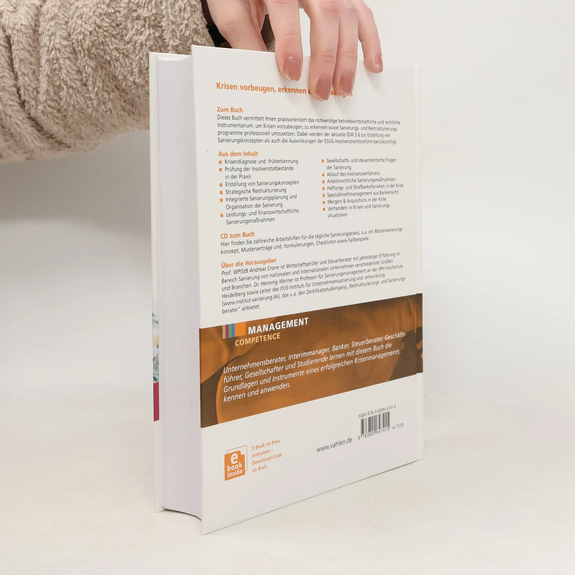 Dieses Buch vermittelt praxisorientiert die betriebswirtschaftlichen und rechtlichen Instrumente zur Krisenprävention, -erkennung und zur professionellen Umsetzung von Sanierungs- und Restrukturierungsprogrammen. Es berücksichtigt den aktuellen IDW S 6 zur Erstellung von Sanierungskonzepten sowie die Auswirkungen der ESUG-Insolvenzrechtsreform. Die Inhalte umfassen Krisendiagnose und -früherkennung, die Prüfung der Insolvenztatbestände in der Praxis, die Erstellung von Sanierungskonzepten, strategische Restrukturierung, integrierte Sanierungsplanung und die Organisation der Sanierung. Zudem werden leistungs- und finanzwirtschaftliche Sanierungsmaßnahmen, gesellschafts- und steuerrechtliche Fragen, der Ablauf des Insolvenzverfahrens, arbeitsrechtliche Sanierungsmaßnahmen sowie Haftungs- und Strafbarkeitsrisiken behandelt. Ein spezielles Augenmerk liegt auf dem Spezialkreditmanagement aus Bankensicht, Mergers & Acquisitions in Krisensituationen und dem Verhandeln in Krisen. Zusätzlich bietet die CD zahlreiche Arbeitshilfen wie Mustersanierungskonzepte, Musterverträge, Checklisten und Fallbeispiele. Die Herausgeber bringen umfassende Erfahrung im Bereich der Unternehmenssanierung mit. Unternehmensberater, Interimmanager, Banker, Steuerberater, Geschäftsführer, Gesellschafter und Studierende können mit diesem Buch die Grundlagen und Instrumente eines erfolgreichen Krisenmanagements erlernen und anwenden.