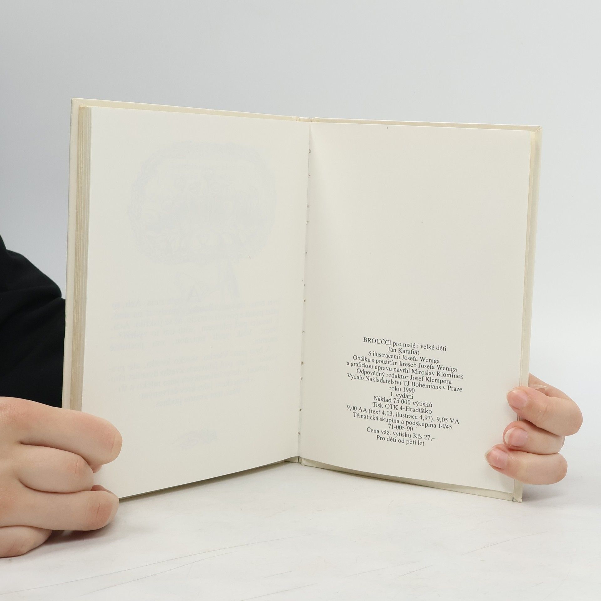Broučky, jediné umělecké literární dílo Jana Karafiáta (1846–1929), potkaly nejednoduché osudy. Roku 1876 anonymně vyšel skromný, neilustrovaný svazek – tehdy s názvem Broučci pro malé i velké děti – a zapadl vcelku bez povšimnutí. Až teprve po sedmnácti letech knížku objevil a zpopularizoval novinář Gustav Jaroš, který ji označil jako „snad nejkrásnější květ naší české literatury dětské“ a jejího autora nazval „českým Andersenem“. Poetická obraznost Broučků, citlivý přírodní lyrismus a ušlechtilý humanismus si dále uchovávají nepomíjející platnost. I jazykově, svým jadrným básnickým slohem šťastně spojujícím hovorovost lidové řeči s vytříbenými biblismy, je dílo Jana Karafiáta pozoruhodné. Čtenářsky i posluchačsky stále přitažlivé zůstávají postavičky malých hrdinů, broučků a berušek, které při všech svých světlých stránkách nejsou zbaveny pravdivých lidských vlastností. Spolehlivým průvodcem Broučků jsou ilustrace národního umělce Jiřího Trnky, které přes časový odstup od svého vzniku na počátku čtyřicátých let nic nepozbyly ze svého půvabu.... celý text