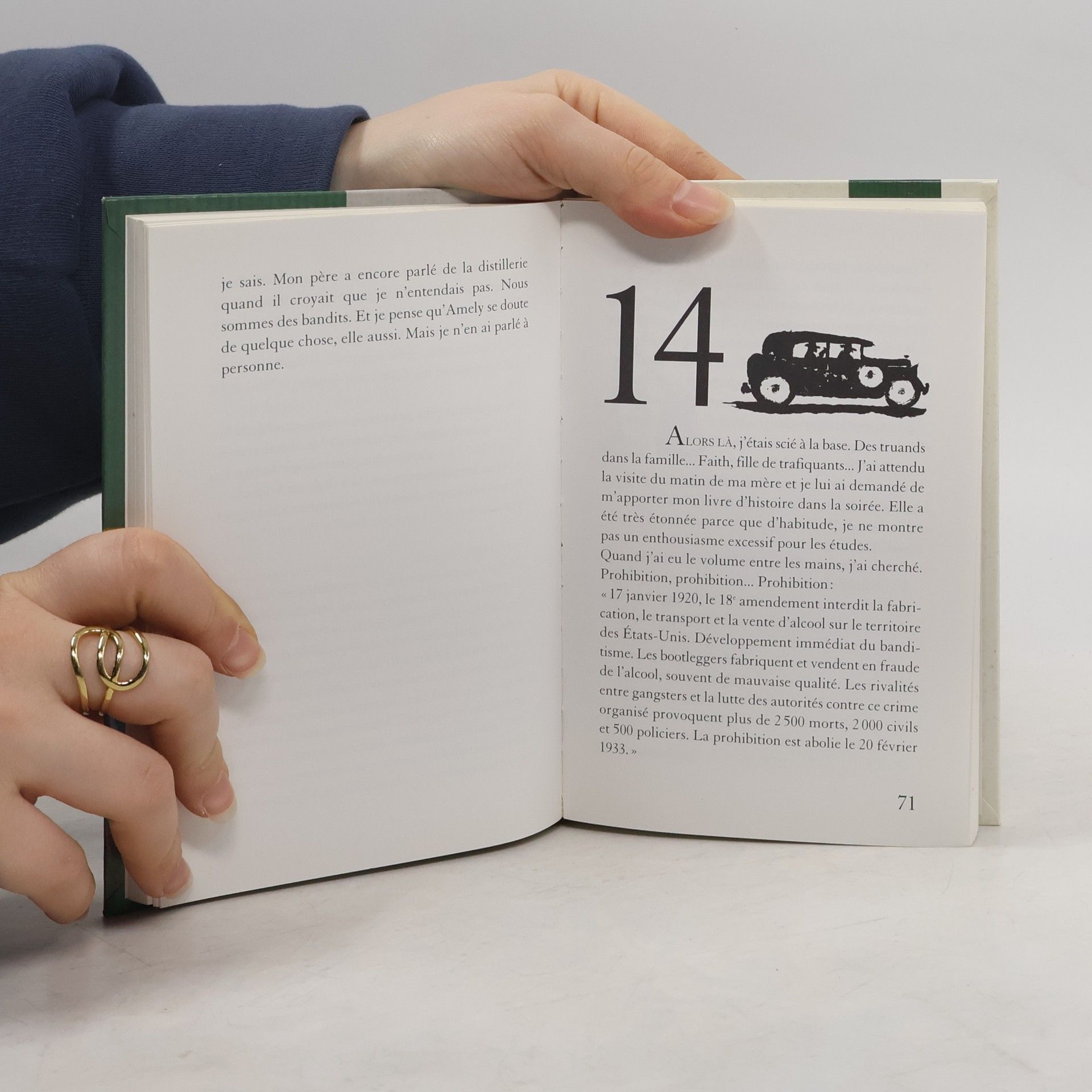 " Descendez-moi ce fumier ! " J'étais tellement paniquée que je suis restée là,bouche ouverte, sans bouger ni crier, tandisque les bandits couchaient en joue mon père. Quand le premier coup de feu a claqué, j'ai fermé les yeux. Faith Green a 12 ans en 1922, quand elle rédige ces lignes dans un cahier recouvert de cuir rouge. C'était pendant la terrible époque de la prohibition. 76 ans plus tard, elle débarque dans la vie et la chambre de son arrière-petit-fils, avec sa mauvaise humeur, un énorme revolver et son journal intime planqué au fond de sa valise. Pour Mickey, la tentation est grande de découvrir les secrets de Faith Green...