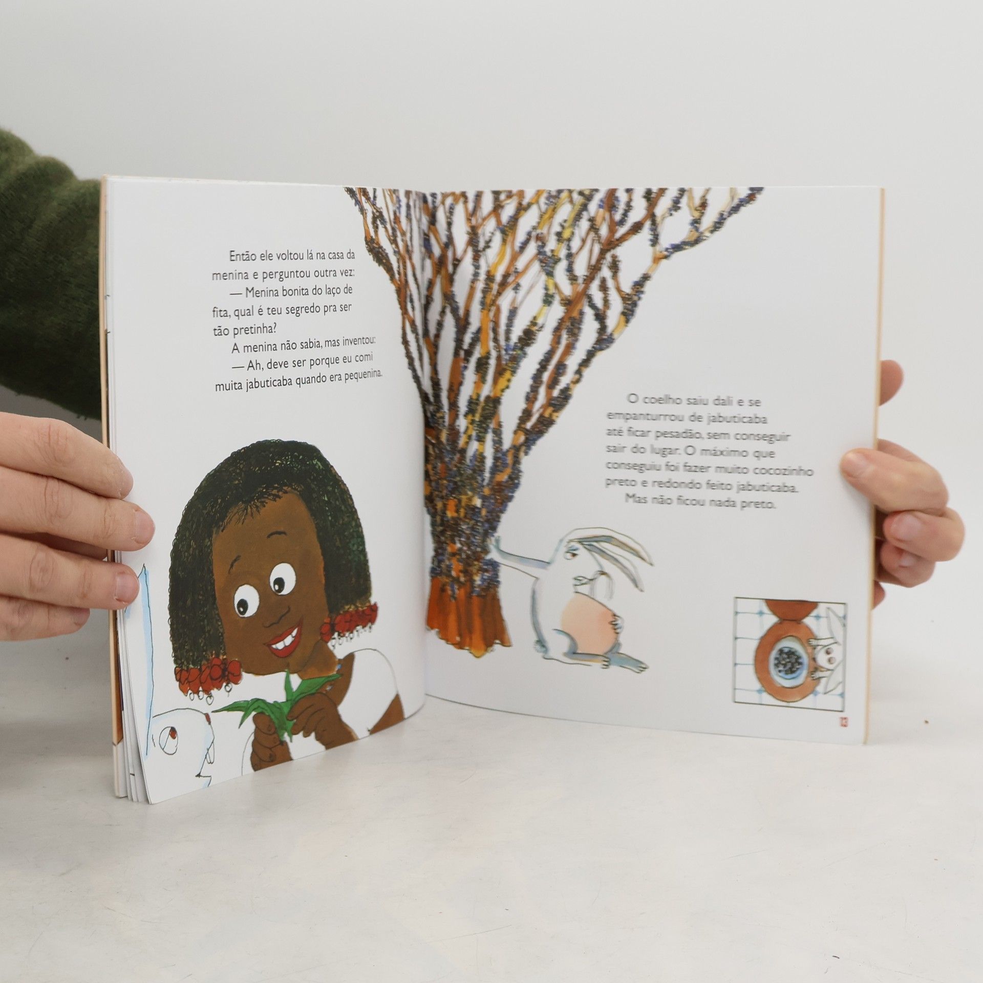 O coelhinho branco quer ter uma filha pretinha como aquela menina do laço de fita. Mas ele não sabe como a menina herdou aquela cor.