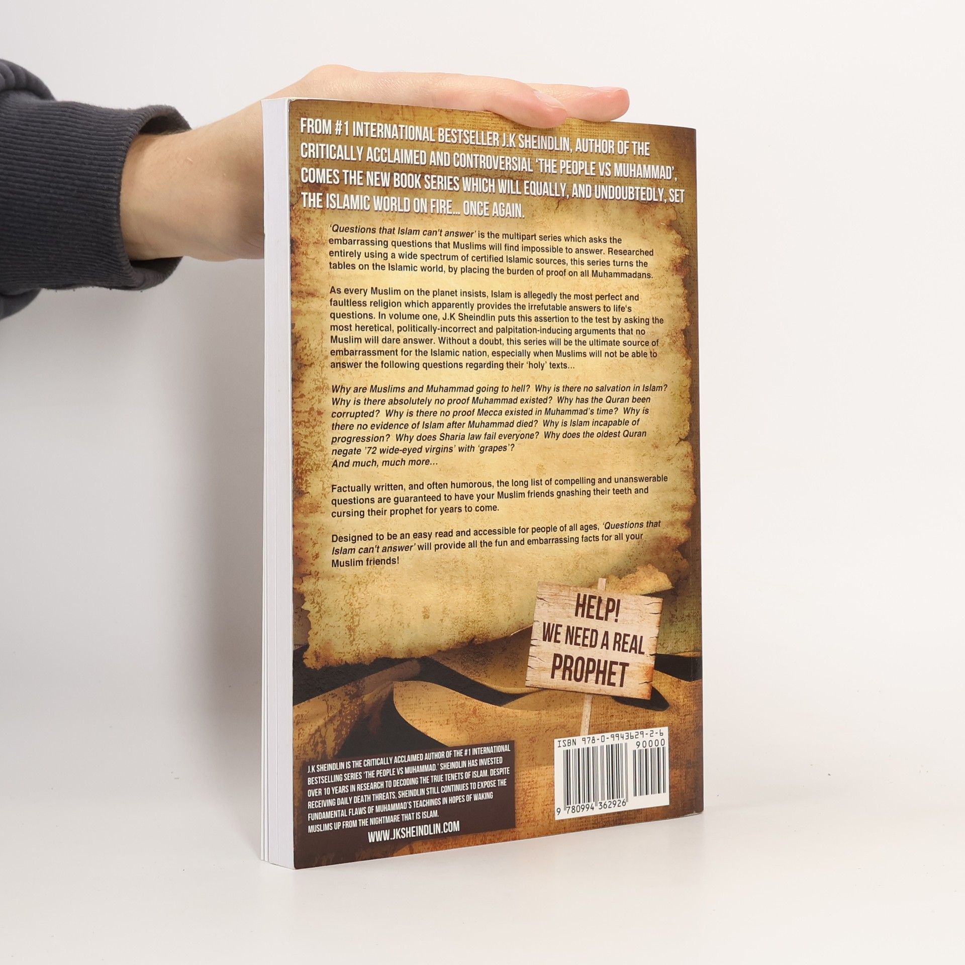 "Read with great interest and was very impressed by the level of research committed to the project." - Katie Hopkins Productions, Radio DJ for LBC UK. "J.K. Sheindlin has done something incredible." - WND Online News. From #1 international bestseller J.K. Sheindlin, author of the controversial 'The People vs Muhammad', comes a new series that will challenge the Islamic world. This multipart series, 'Questions that Islam can't answer', poses difficult questions that Muslims may find impossible to address. Grounded in extensive research from certified Islamic sources, it shifts the burden of proof onto Muhammadans, questioning the claim that Islam is the most perfect religion with all the answers to life's questions. In volume one, Sheindlin examines provocative and politically incorrect arguments that many Muslims may avoid. This series aims to expose uncomfortable truths, such as why Muslims and Muhammad are said to be going to hell, the absence of salvation in Islam, and the lack of evidence for Muhammad's existence. It also raises questions about the Quran's authenticity, the historical existence of Mecca, and the challenges of Sharia law. With a mix of factual content and humor, this accessible read promises to provide thought-provoking insights that may leave readers questioning long-held beliefs.