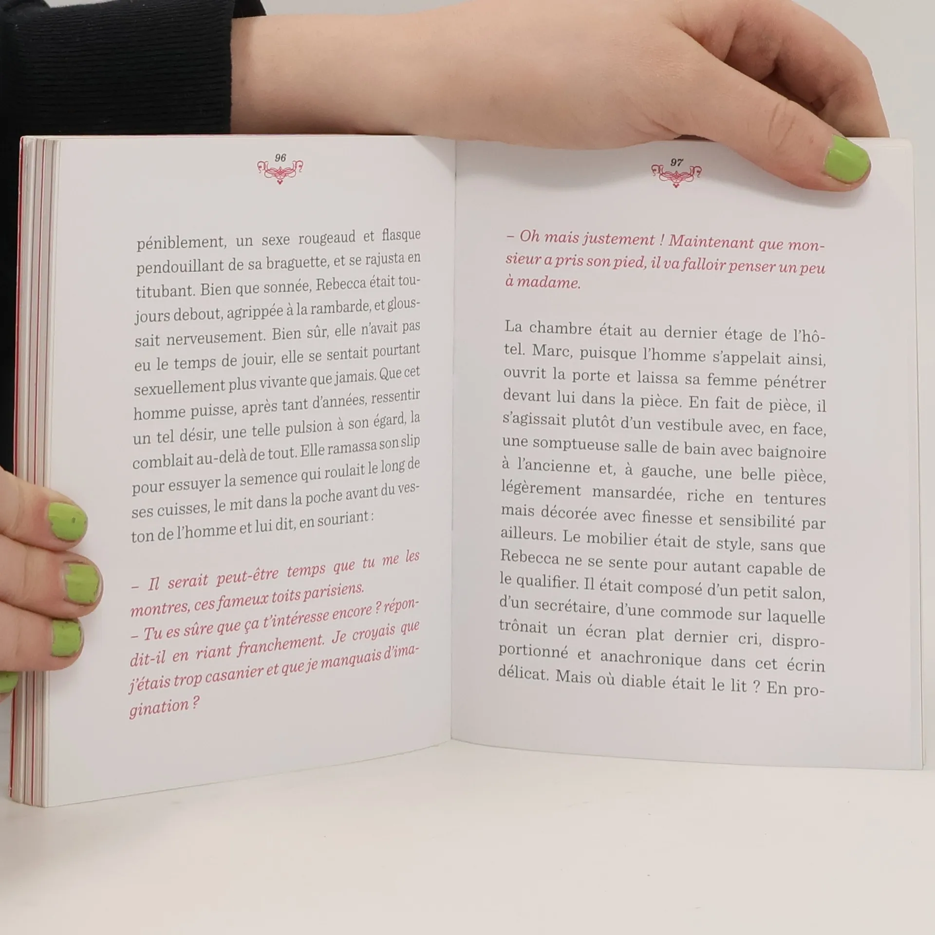 Jeux de menottes, de rubans, sur long courrier en première classe, dans l'ascenseur d'un building newyorkais, en limousine sur les Champs-Élysées, soumission, domination., 50 scénarios érotiques à mettre entre les mains de toutes les femmes innocentes ou averties. Arguments-clés : Un livre sexy à prix tout doux ; La thématique du plaisir au féminin au top, avec le succès annoncé de 50 nuances de Grey, traduction du multi-best-seller : Fifty Shades of Grey de l'auteur britannique E. L. James (20 millions d'exemplaires aux USA).