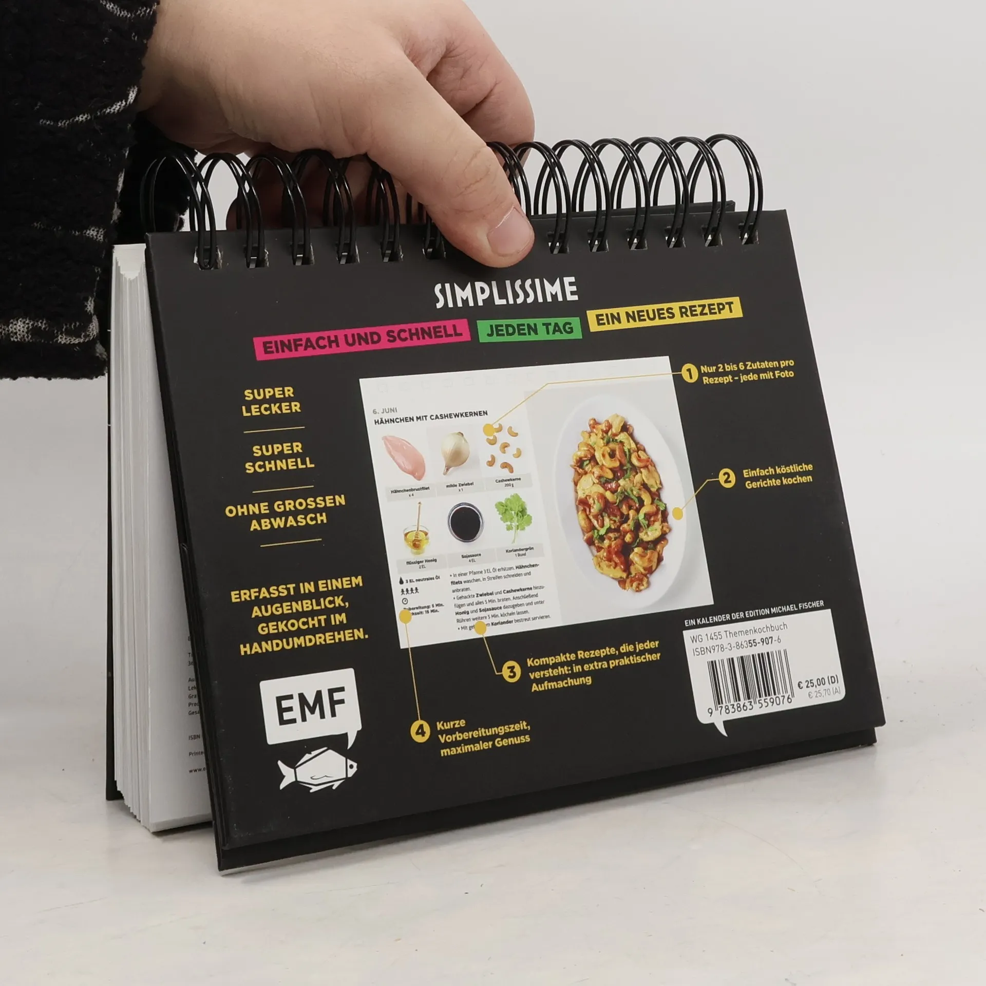 Jeden Tag wissen, was man kocht! Der Tischkalender mit 365 Rezepten des französischen Kochs und Bestsellerautors Jean-François Mallet hat für jeden Tag ein leckeres Rezept parat. Mit seiner zweckmäßigen Spiralbindung und einem Foto zu jedem Rezept ist er der perfekte Begleiter für die Küche. Wie aus der Simplissime-Reihe bekannt, haben alle Rezepte maximal 6 Zutaten und lassen sich dank der einfachen Rezeptgestaltung mit kurzen Steps und großer Schrift schnell und einfach nachkochen. Egal, ob Single oder Großfamilie - hier ist ein Jahr Kochspaß garantiert!