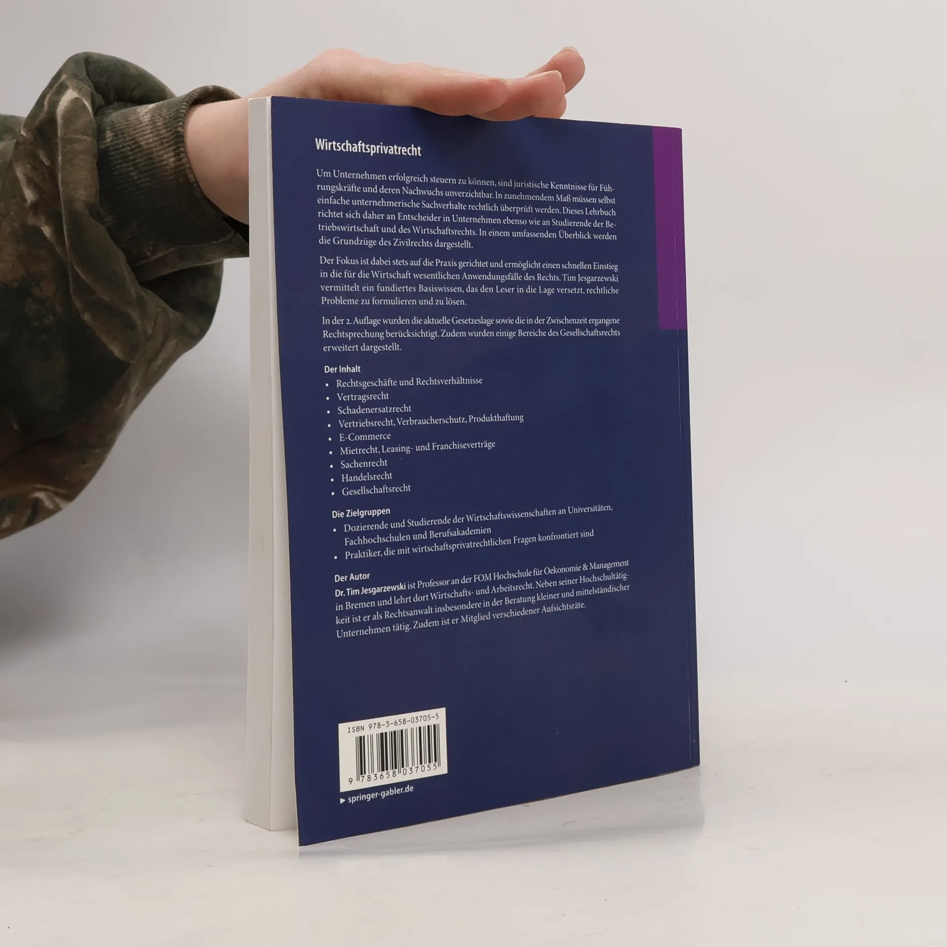 Um Unternehmen erfolgreich steuern zu können, sind juristische Kenntnisse für Führungskräfte und deren Nachwuchs unverzichtbar. In zunehmendem Maß müssen selbst einfache unternehmerische Sachverhalte rechtlich überprüft werden. Dieses Lehrbuch richtet sich daher an Entscheider in Unternehmen ebenso wie an Studierende der Betriebswirtschaft und des Wirtschaftsrechts. In einem umfassenden Überblick werden die Grundzüge des Zivilrechts dargestellt. Der Fokus ist dabei stets auf die Praxis gerichtet und ermöglicht einen schnellen Einstieg in die für die Wirtschaft wesentlichen Anwendungsfälle des Rechts. Tim Jesgarzewski vermittelt ein fundiertes Basiswissen, das den Leser in die Lage versetzt, rechtliche Probleme zu formulieren und zu lösen. In der 2. Auflage wurden die aktuelle Gesetzeslage sowie die in der Zwischenzeit ergangene Rechtsprechung berücksichtigt. Zudem wurden einige Bereiche des Gesellschaftsrechts erweitert dargestellt.