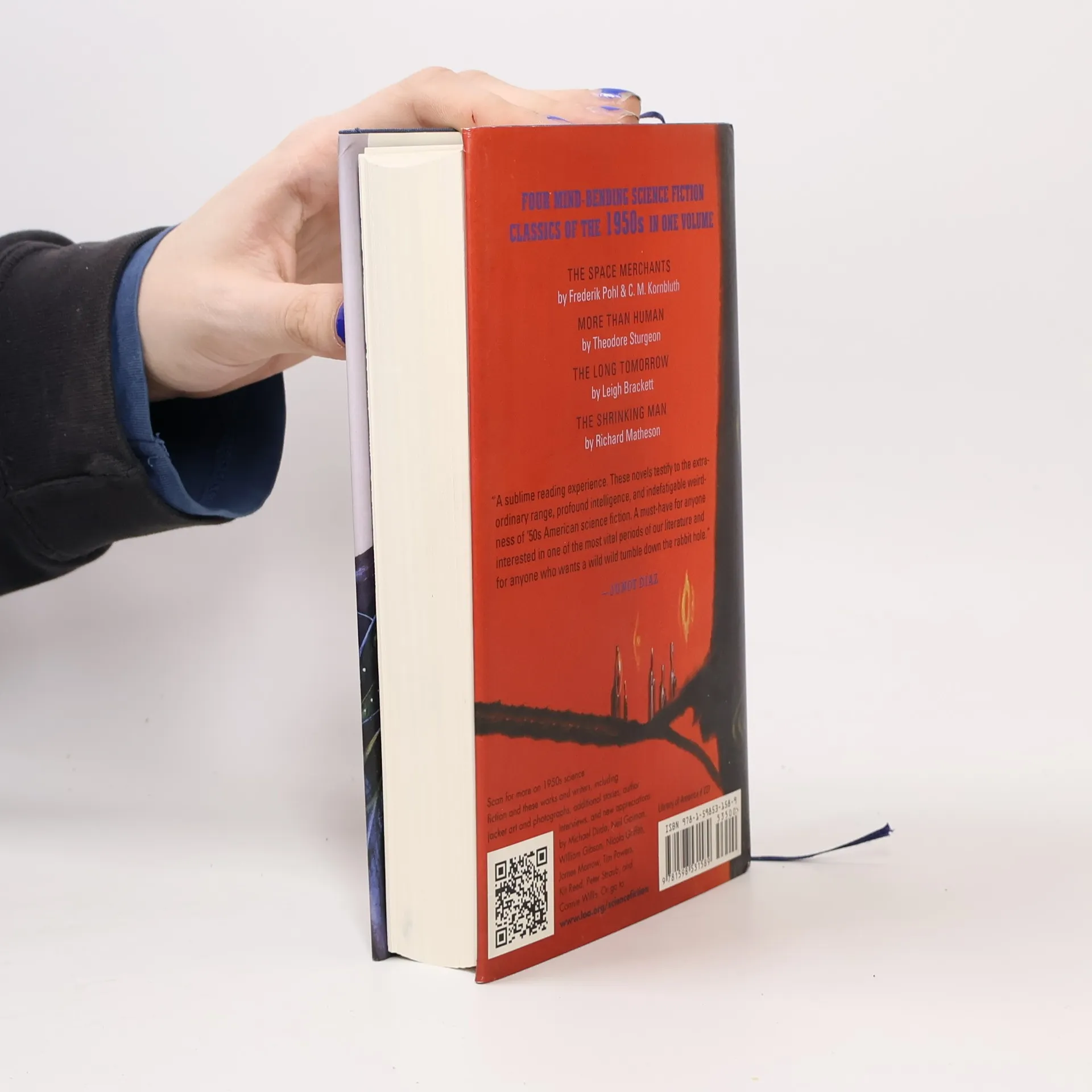 Modern science fiction came of age in the 1950s, and it was in America that the genre broke most exuberantly free from convention. Moving beyond the pulp magazines, science fiction writers stretched their imaginations at novel length, ushering in an era of stylistic experiment and freewheeling speculation that responded in wildly inventive ways to the challenges and perplexities of an era of global threat and rapid technological change. Long unnoticed or dismissed by the literary establishment, these “outsider” novels are now recognized as American classics.This, the first of two volumes surveying the decade’s peaks, presents four very different visions of uncertain futures and malleable selves. Frederik Pohl and C. M. Kornbluth’s The Space Merchants (1953), acclaimed in its day by Kingsley Amis as “the best science fiction novel so far,” brought a ferocious, satiric edge to its depiction of a future world dominated by multinational advertising agencies. In Theodore Sturgeon’s More Than Human (1953), a group of damaged individuals finds a strange new fulfillment in what may be the next stage of evolution.Leigh Brackett was one of the first women to make her mark as a science fiction novelist. In The Long Tomorrow (1955), she pits anti-urban technophobes against the remnants of a civilization that destroyed itself through nuclear war. The hero of Richard Matheson’s fable-like The Shrinking Man (1956), condemned to grow ever smaller by a mysterious cloud, moves through humiliations and perils toward what Peter Straub calls “a real surprise . . . a fresh, wide-eyed step into a world both beautiful and new.”Here are four classic novels that, each in a different way, open fresh territory, broaching untried possibilities and brimming with the energies of an age fearfully conscious of standing on the brink of the unknown.