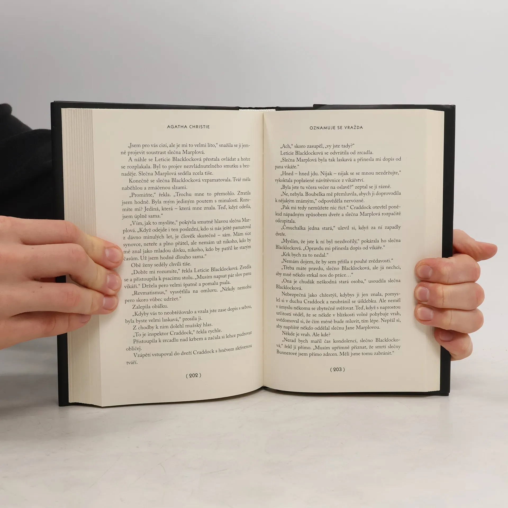 Detektivní příběhy slečny Marplové, bystré pozorovatelky a zkušené znalkyně lidských povah, vycházejí v nové edici. Poklidný a jednotvárný život obyvatel starosvětského městečka Chipping Cleghorn rozvíří inzerát otištěný v místních novinách – je v něm oznámen zločin, a to dokonce hrdelní. Na určené místo – do vily Little Paddocks – se okamžitě začnou sjíždět zvědaví hosté. V ohlášenou dobu světla v domě náhle zhasnou, tmu protne světlo baterky, výkřik „Ruce vzhůru!“ a dva výstřely. Paní domu je zraněna – a na podlaze leží neznámý mrtvý muž…