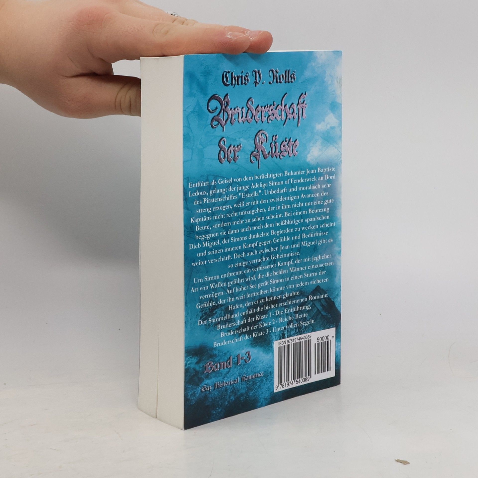 Sammelband 1-3Entf�hrt als Geisel von dem ber�chtigten Bukanier Jean Baptiste Ledoux, gelangt der junge Adelige Simon of Fenderwick an Bord des Piratenschiffes "Estrella". Unbedarft und moralisch sehr streng erzogen, wei� er mit den zweideutigen Avancen des Kapit�ns nicht recht umzugehen, der in ihm nicht nur eine gute Beute, sondern mehr zu sehen scheint.Bei einem Beutezug begegnen sie dann auch noch dem hei�bl�tigen spanischen Dieb Miguel, der Simons dunkelste Begierden zu wecken scheint und seinen inneren Kampf gegen Gef�hle und Bed�rfnisse weiter versch�rft. Doch auch zwischen Jean und Miguel gibt es so einige verruchte Geheimnisse. Um Simon entbrennt ein verbissener Kampf, der mit jeglicher Art von Waffen gef�hrt wird, die die beiden M�nner einzusetzen verm�gen. Auf hoher See ger�t Simon in einen Sturm der Gef�hle, der ihn weit forttreiben k�nnte von jedem sicheren Hafen, den er zu kennen glaubte.Der Sammelband enth�lt die bisher erschienenen Romane:Bruderschaft der K�ste 1 - Die Entf�hrung,Bruderschaft der K�ste 2 - Reiche Beute undBruderschaft der K�ste 3 - Unter vollen SegelnGay Historical Romance