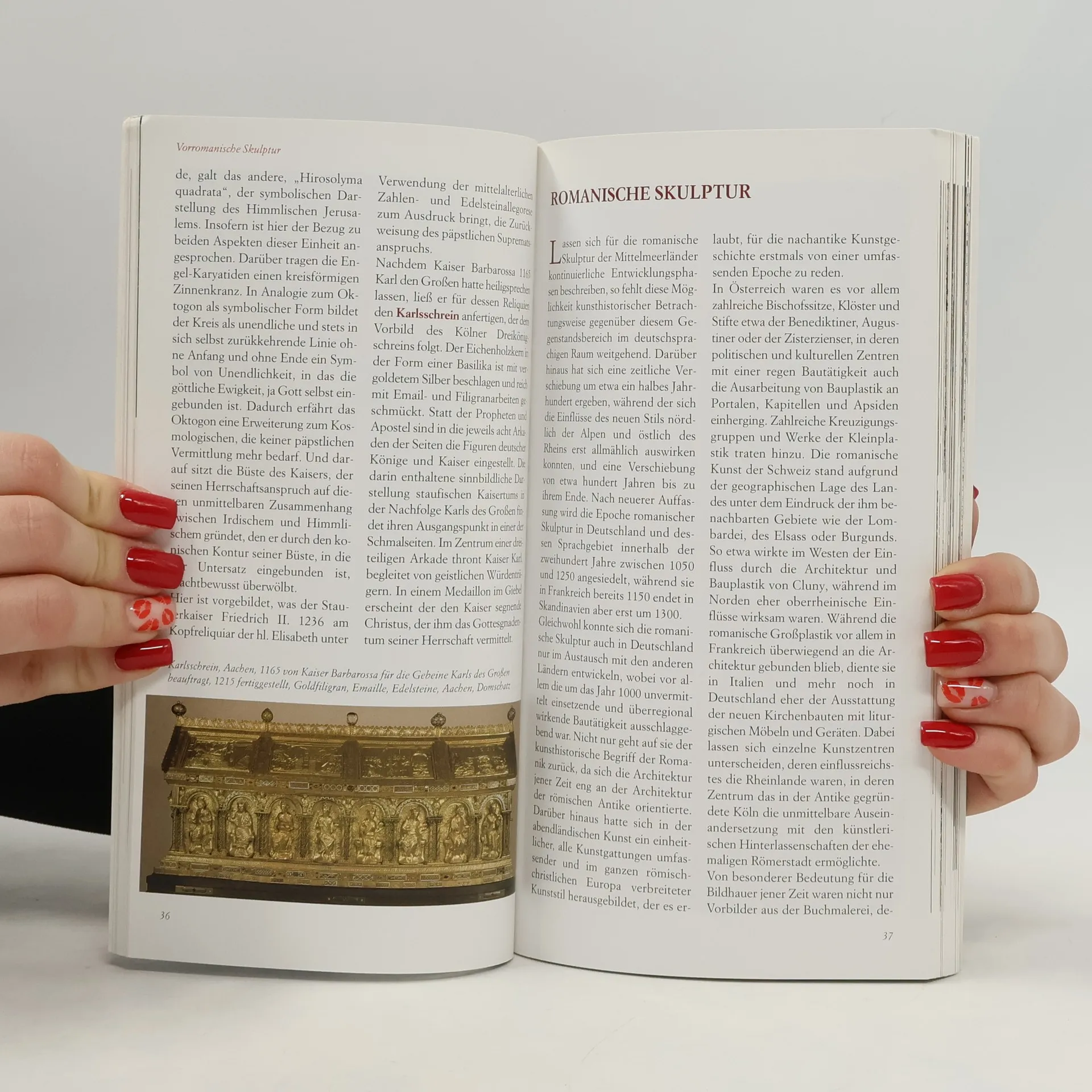 Die Übersicht zur mittelalterlichen Skulptur im deutschsprachigen Raum stellt der Autor an ausgewählten Bildwerken vor. Die Untersuchung beginnt im frühen Mittelalter mit der Darstellung merowingischer Grabsteine. Mit der Hofschule Karls des Großen und den ottonischen Klosterwerkstätten erreichen die Elfenbeinschnitzerei und Goldschmiedekunst einen ersten Höhepunkt. Im 12. und 13. Jahrhundert erfährt die Bildhauerkunst an einigen Orten – insbesondere in Bamberg, Magdeburg, Naumburg, Mainz, Meißen und Straßburg – erneut eine Qualität von internationalem Rang. Der Überblick endet mit den bedeutenden Schnitzaltären der Spätgotik von Tilman Riemenschneider, Veit Stoß und Michael Pacher.
