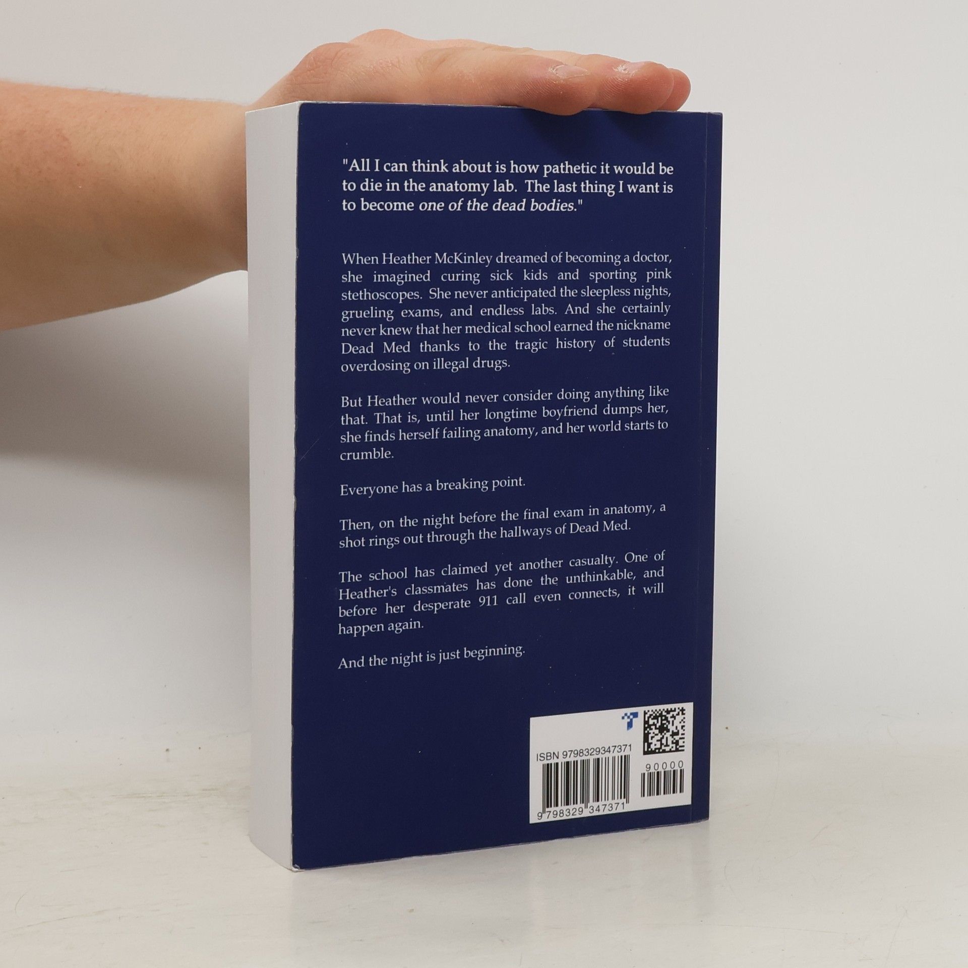 "When Heather McKinley dreamed of becoming a doctor, she imagined curing sick kids and sporting pink stethoscopes. She never anticipated the sleepless nights, grueling exams, and endless labs. And she certainly never knew that her medical school earned the nickname Dead Med thanks to the tragic history of students overdosing on illegal drugs. But Heather would never consider doing anything like that. That is, until her longtime boyfriend dumps her, she finds herself failing anatomy, and her world starts to crumble. Then, on the night before the final exam in anatomy, a shot rings out through the hallways of Dead Med. The school has claimed yet another casualty. One of Heather's classmates has done the unthinkable, and before her desperate 911 call even connects, it will happen again" -- Amazon.com.