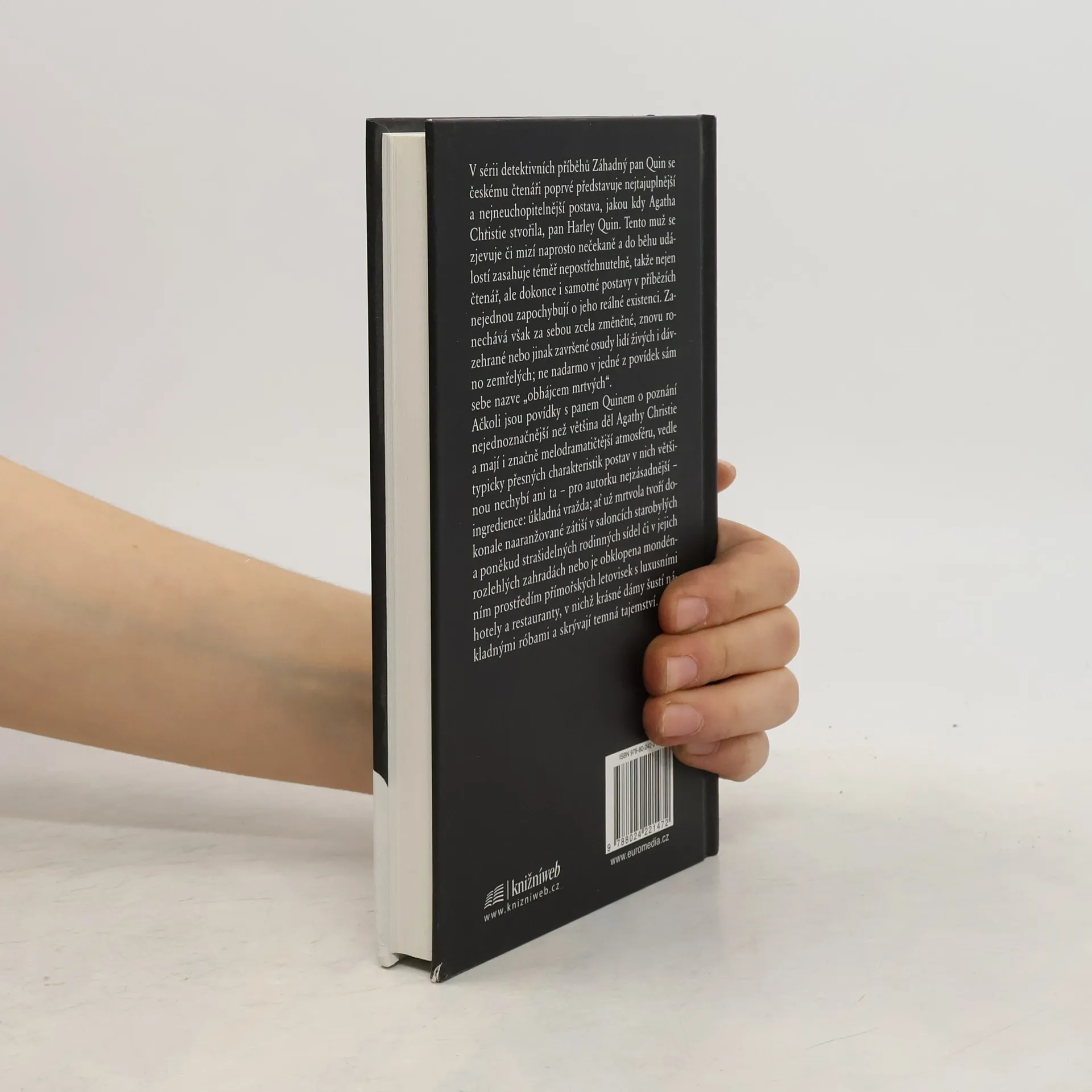 V sérii detektivních příběhů Záhadný pan Quin se českému čtenáři poprvé představuje nejtajuplnější a nejneuchopitelnější postava, jakou kdy Agatha Christie stvořila, pan Harley Quin. Tento muž se zjevuje či mizí naprosto nečekaně a do běhu událostí zasahuje téměř nepostřehnutelně, takže nejen čtenář, ale dokonce i samotné postavy v příbězích nejednou zapochybují o jeho reálné existenci. Zanechává však za sebou zcela změněné, znovu rozehrané nebo jinak završené osudy lidí živých i dávno zemřelých; ne nadarmo v jedné z povídek sám sebe nazve „obhájcem mrtvých“. Ačkoli jsou povídky s panem Quinem o poznání nejednoznačnější než většina děl Agathy Christie a mají i značně melodramatičtější atmosféru, vedle typicky přesných charakteristik postav v nich většinou nechybí ani ta – pro autorku nejzásadnější – ingredience: úkladná vražda. Ať už mrtvola tvoří dokonale naaranžované zátiší v saloncích starobylých a poněkud strašidelných rodinných sídel či v jejich rozlehlých zahradách, nebo je obklopena mondénním prostředím přímořských letovisek s luxusními hotely a restauranty, v nichž krásné dámy šustí nákladnými róbami a skrývají temná tajemství…