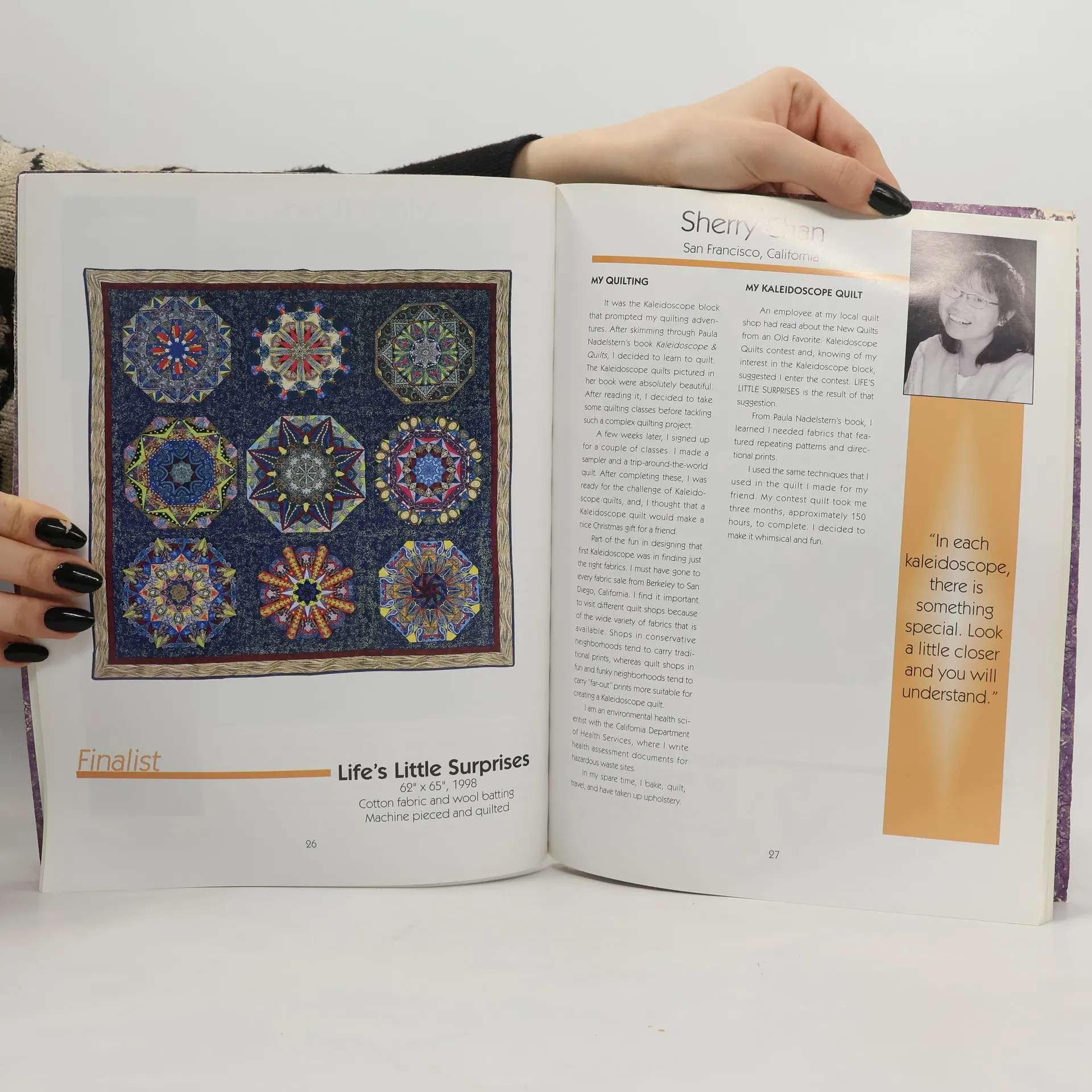 The 18 quilts featured in this publication capture in cloth the magic and wonder of the kaleidoscope. These stunning displays of color, design, and workmanship are finalists in the 1999 'New Quilts from Old Favorites' contest sponsored by the Museum of the American Quilter's Society. Finalists share with you the tips, techniques, and patterns they used to create their Kaleidoscope block contest entries.