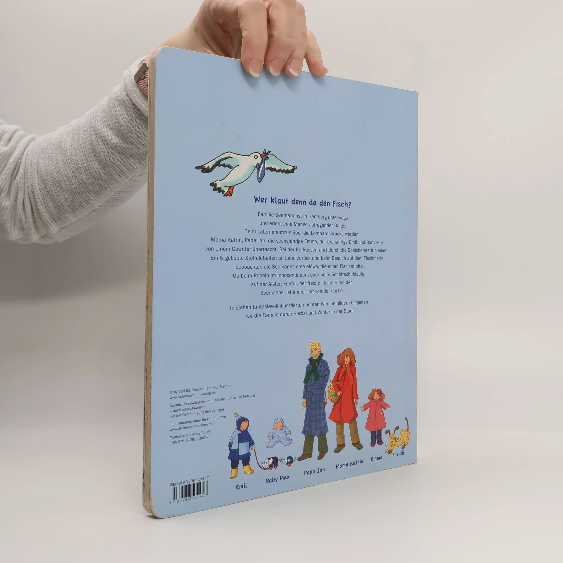 Es wimmelt überall da, wo Hamburg am schönsten ist: Beim Laternenumzug über die Lombardsbrücke, beim Schlittschuhlaufen auf der Alster, bei der Barkassenfahrt durch die Speicherstadt, auf dem Weihnachtsmarkt, vor dem Rathaus … Die fünfköpfige Familie Seemann erlebt Herbststürme und Wintertage in der Stadt. Und immer mit dabei ist Freddi, der freche kleine Hund der Seemanns. Es gibt viel zu entdecken in Hamburg!