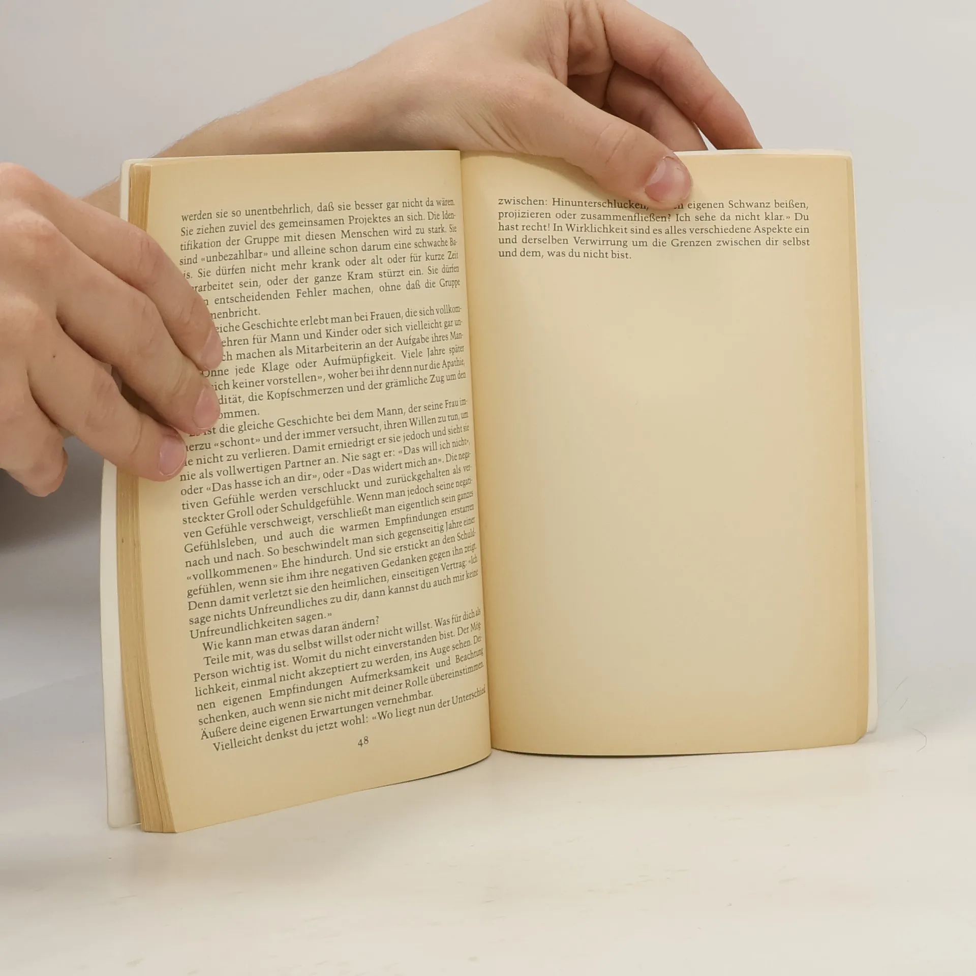 Bei der Gestaltungstherapie geht es „um dich und mich und um unsere Erfahrung hier und jetzt“ sagt Bruno-Paul de Roeck. „Um Wachstum: spontaner, lebendiger und glücklicher sein. Deinen eigenen Kern mehr wertschätzen. Neue Schritte riskieren. Von der Psychotherapie erwartet man, dass sie “Menschen anpasst und sie wieder in das gesellschaftliche Joch einspannt„. Gestalt versucht, angepasste Menschen, die in ihrem Joch nicht glücklich sind, wieder auf eigene Füße zu stellen.“