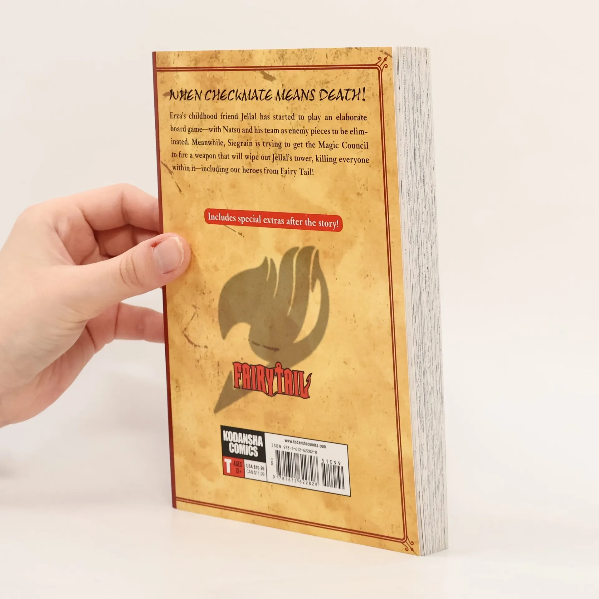 WHEN CHECKMATE MEANS DEATH! Erza’s childhood friend Jellal has started to play an elaborate board game – with Natsu and his team as enemy pieces to be eliminated. Meanwhile, Siegrain is trying to get the Magic Council to fire a weapon that will wipe out Jellal’s tower, killing everyone within it – including out heroes from Fairy Tail! Includes special extras after the story!