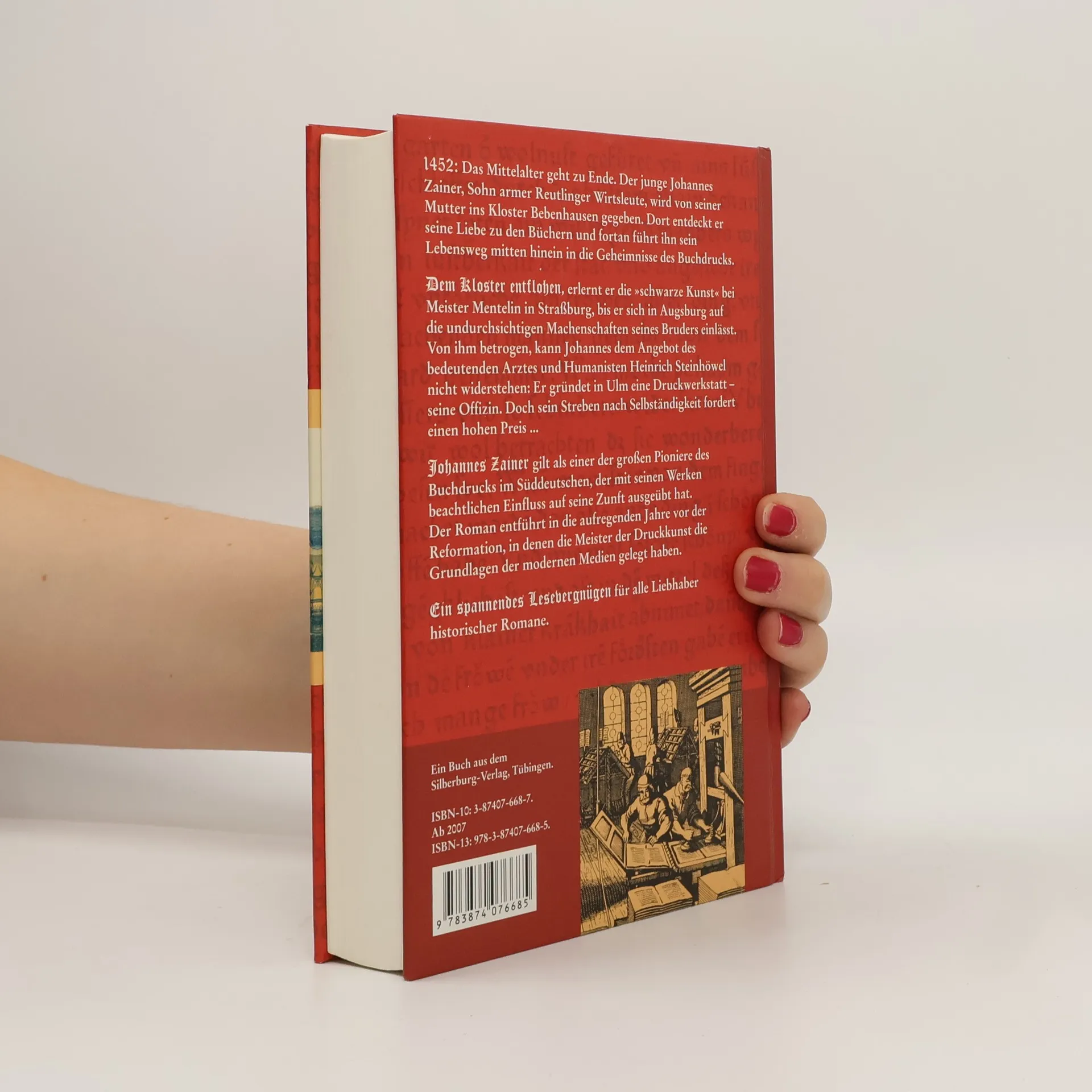 1452: Das Mittelalter geht zu Ende. Der junge Johannes Zainer, Sohn armer Reutlinger Wirtsleute, wird von seiner Mutter ins Kloster Bebenhausen gegeben. Dort entdeckt er seine Liebe zu den Büchern und fortan führt ihn sein Lebensweg mitten hinein in die Geheimnisse des Buchdrucks. Dem Kloster entflohen, erlernt er die 'schwarze Kunst' bei Meister Mentelin in Strassburg, bis er sich in Augsburg auf die undurchsichtigen Machenschaften seines Bruders einlässt. Von ihm betrogen, kann Johannes dem Angebot des bedeutenden Arztes und Humanisten Heinrich Steinhöwel nicht widerstehen: Er gründet in Ulm eine Druckwerkstatt – seine Offizin. Doch sein Streben nach Selbständigkeit fordert einen hohen Preis. Ein spannendes Lesevergnügen für alle Liebhaber historischer Romane.
