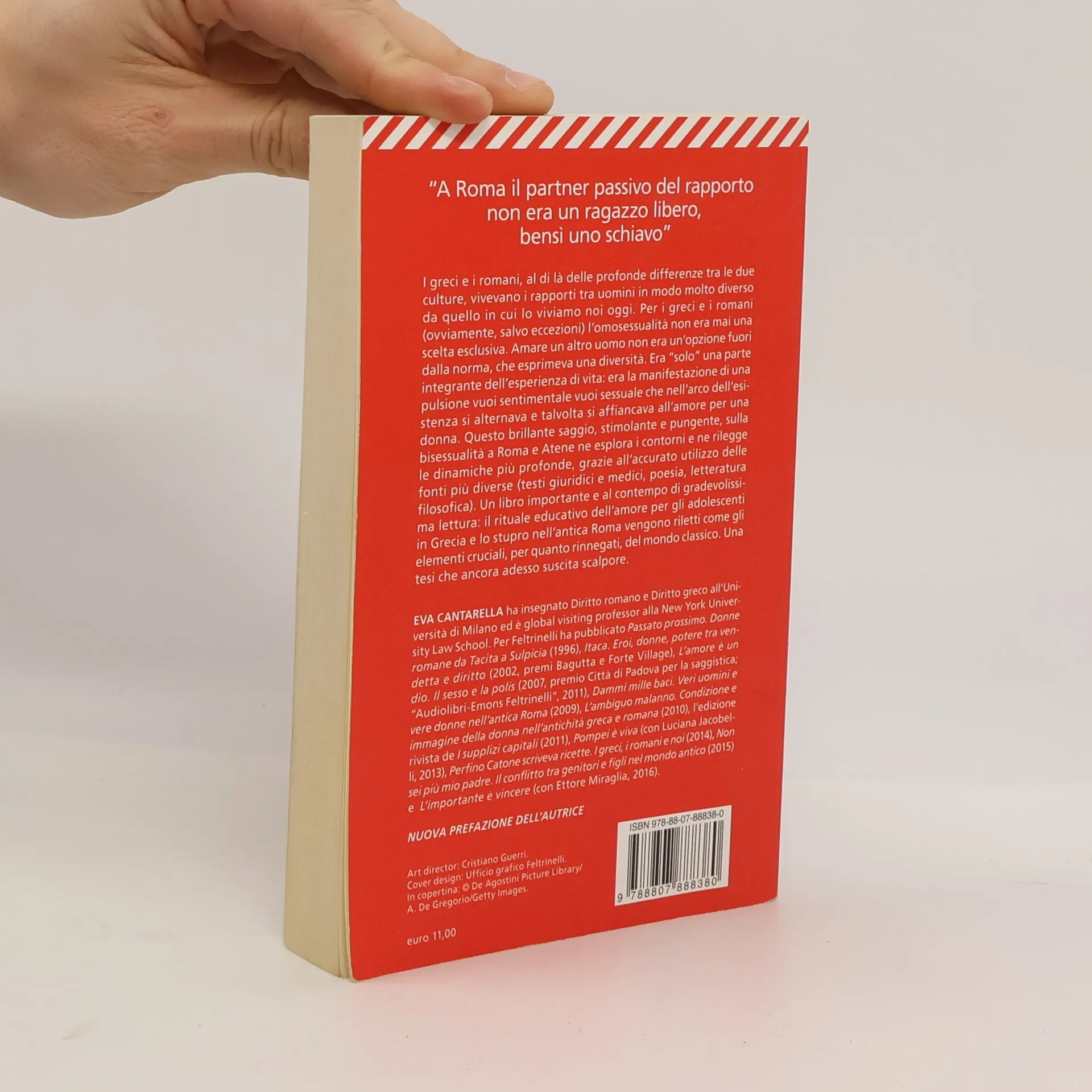 I greci e i romani, al di là delle profonde differenze tra le due culture, vivevano i rapporti tra uomini in modo molto diverso da quello in cui lo viviamo noi oggi. Per i greci e i romani (ovviamente, salvo eccezioni) l'omosessualità non era mai una scelta esclusiva. Amare un altro uomo non era un'opzione fuori dalla norma, che esprimeva una diversità. Era "solo" una parte integrante dell'esperienza di vita: era la manifestazione di una pulsione vuoi sentimentale vuoi sessuale che nell'arco dell'esistenza si alternava e talvolta si affiancava all'amore per una donna. Questo brillante saggio, stimolante e pungente, sulla bisessualità a Roma e Atene ne esplora i contorni e ne rilegge le dinamiche più profonde, grazie all'accurato utilizzo delle fonti più diverse (testi giuridici e medici, poesia, letteratura filosofica). Un libro importante e al contempo di gradevolissima lettura: il rituale educativo dell'amore per gli adolescenti in Grecia e lo stupro nell'antica Roma vengono riletti come gli elementi cruciali, per quanto rinnegati, del mondo classico. Una tesi che ancora adesso suscita scalpore.