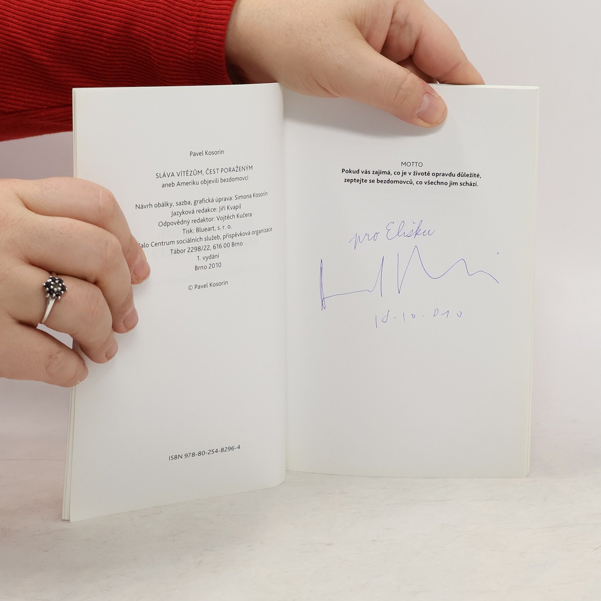 „Pokud vás zajímá, co je opravdu důležité, zeptejte se bezdomovců, co všechno jim schází,“ zní motto výjimečné knihy. Pavel Kosorin tentokrát čtenářům předkládá unikátní soubor rozhovorů se známými osobnostmi (Šárka Kašpárková, Ladislav Jakl, Sára Saudková, Jaro Křivohlavý, Radim Vančura..) a s bezdomovci. Skvělé čtení, které vede k zamyšlení nad tím, jakou cenu má úspěch a jak málo stačí k tomu, aby se člověk dostal na samotný okraj společnosti. V předmluvě k tomu píše: „S lidmi bez domova jsem v kontaktu od roku 1992. Troufám si tvrdit, že o životě bezdomovců něco vím. Přesto mě tito lidé nepřestávají překvapovat. Život na dně společnosti je totiž stejně dobrodružný jako procházka po Měsíci. Cílem této knihy je spojit lidi, kteří se v běžném životě téměř nemají šanci potkat. Vysoce postaveného úředníka, špičkového sportovce, úspěšného podnikatele, známého umělce, váženého akademika a … bezdomovce. Navzdory zdánlivé propasti oddělující tzv. vítěze od tzv. poražených si myslím, že by ti první neměli nikdy ztratit se zřetele ty druhé. Koneckonců žijeme přece ve společném světě a je dost dobře možné, že Bible má pravdu a ti poslední nakonec skutečně budou první.“