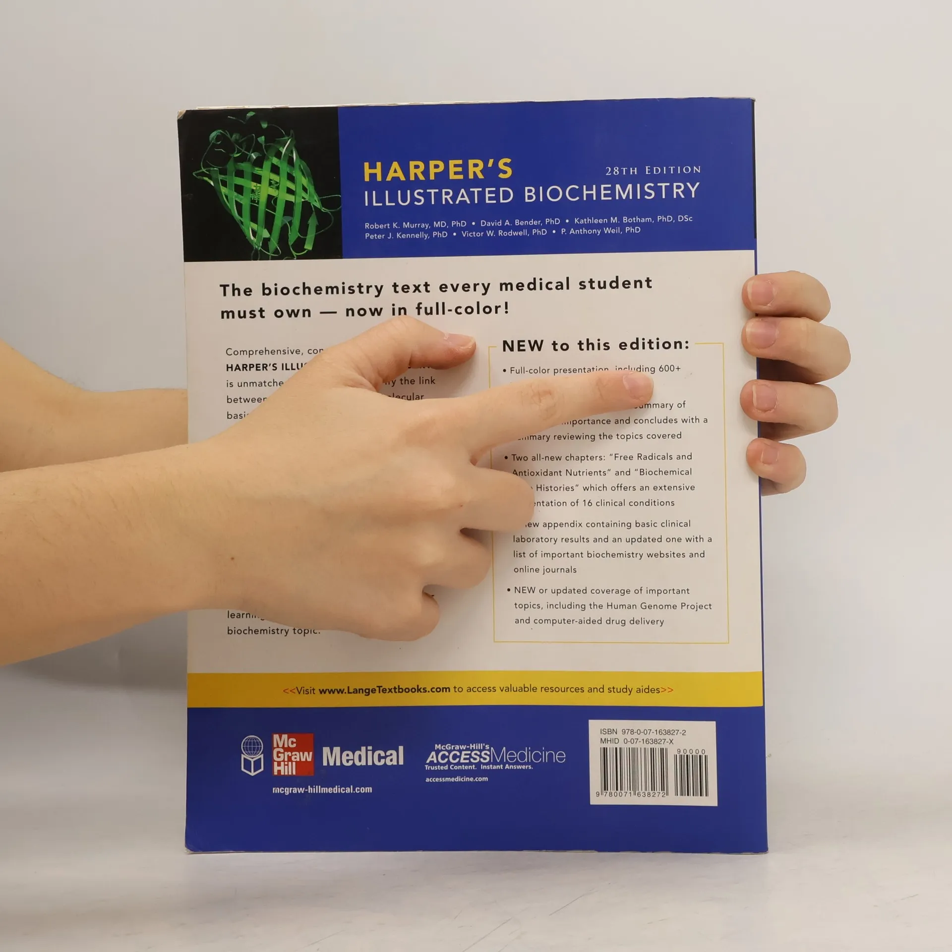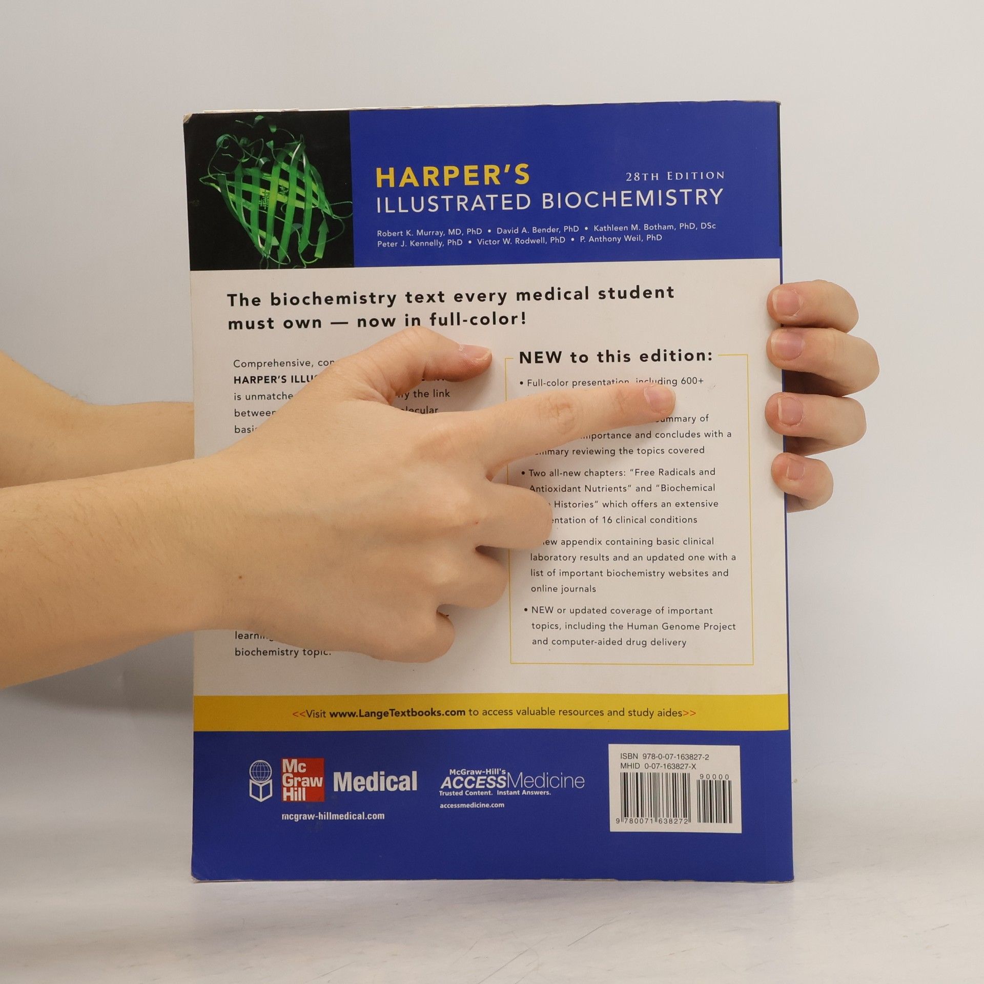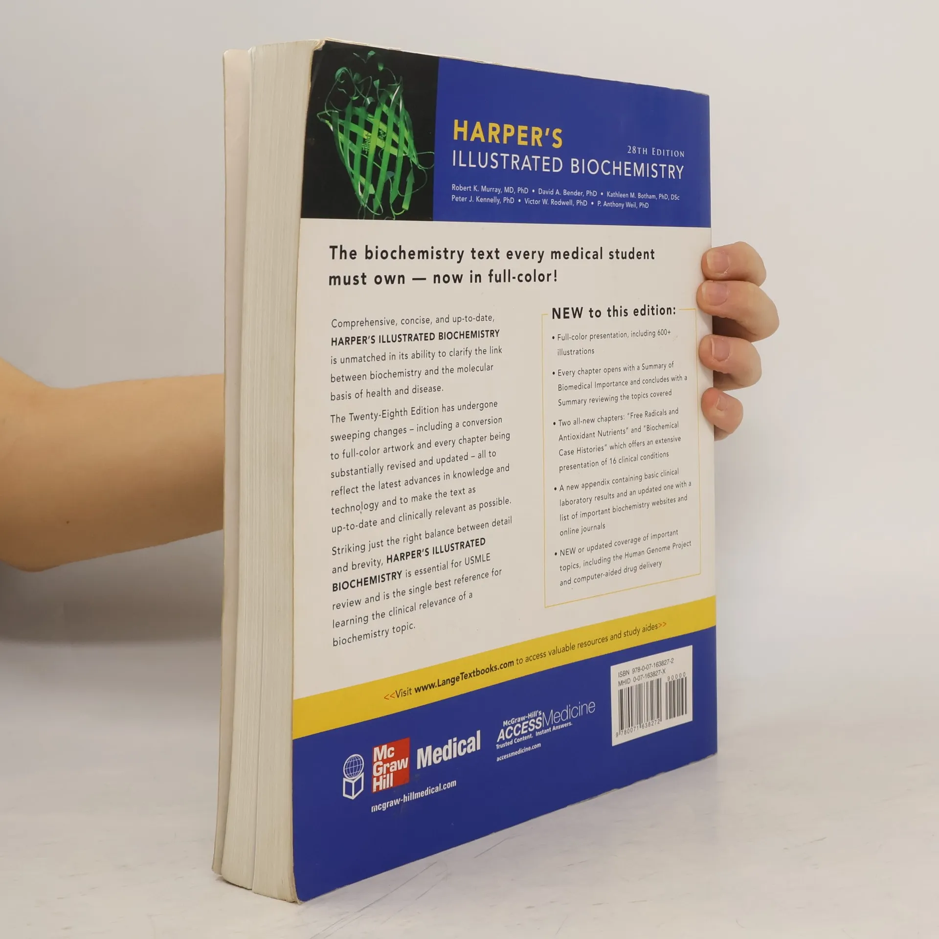 Comprehensive, concise, and up-to-date, Harper's is unrivaled in its ability to clarify the link between biochemistry and the molecular basis of health and disease. The Twenty-Eighth Edition has undergone sweeping changes -- including a conversion to full-color artwork and the substantial revision and updating of every chapter -- all to reflect the latest advances in knowledge and technology and to make the text as up-to-date and clinically relevant as possible. Combining outstanding full-color illustrations with integrated coverage of biochemical diseases and clinical information, Harper's offers an organization and clarity not found in any other text on the subject.