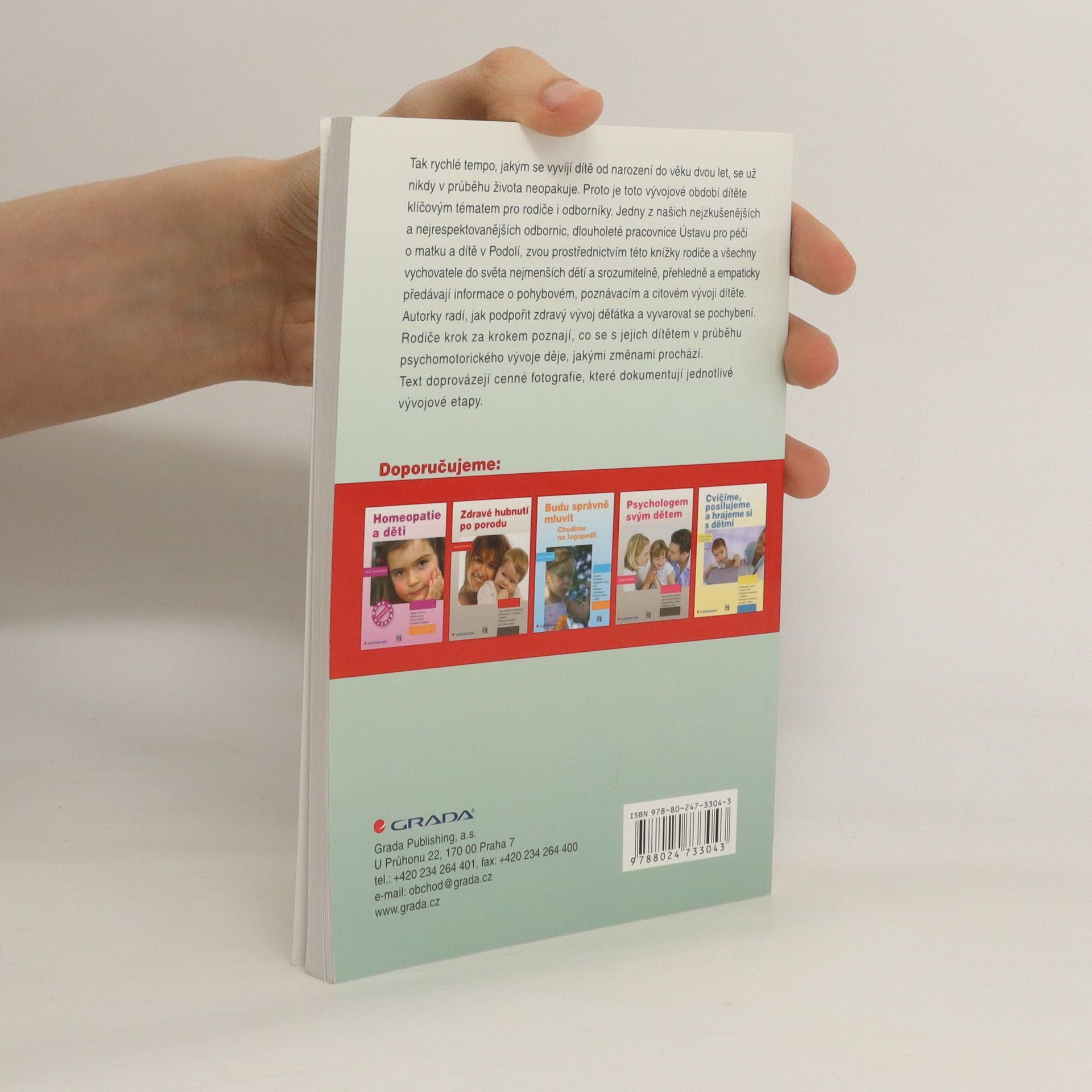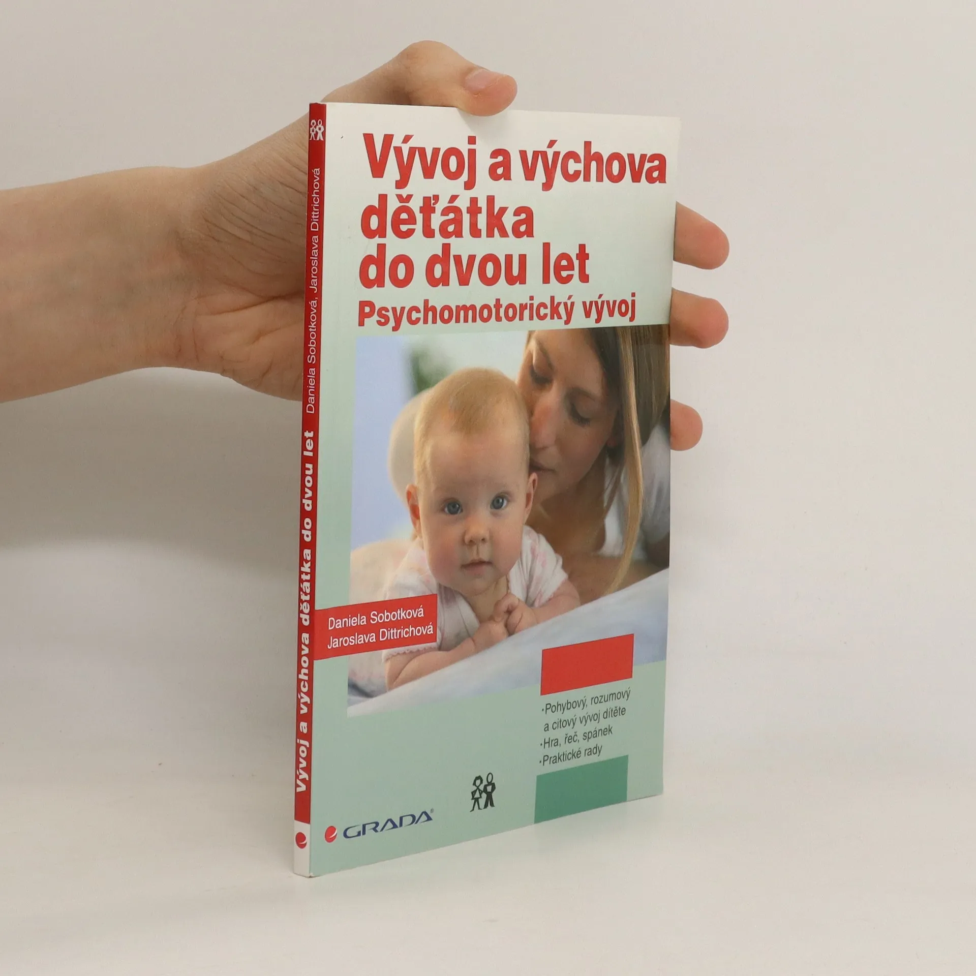 Tak rychlé tempo, jakým se vyvíjí dítě od narození do věku dvou let, se už nikdy v průběhu života neopakuje. Proto je toto vývojové období dítěte klíčovým tématem pro rodiče i odborníky. Jedny z našich nejzkušenějších a nejrespektovanějších odbornic, dlouholeté pracovnice Ústavu pro péči o matku a dítě v Podolí, zvou prostřednictvím této knížky rodiče a všechny vychovatele do světa nejmenších dětí a srozumitelně, přehledně a empaticky předávají informace o pohybovém, poznávacím a citovém vývoji dítěte. Autorky radí, jak podpořit zdravý vývoj děťátka a vyvarovat se pochybení. Rodiče krok za krokem poznají, co se s jejich dítětem v průběhu psychomotorického vývoje děje, jakými změnami prochází. Text doprovázejí cenné fotografie, které dokumentují jednotlivé vývojové etapy.