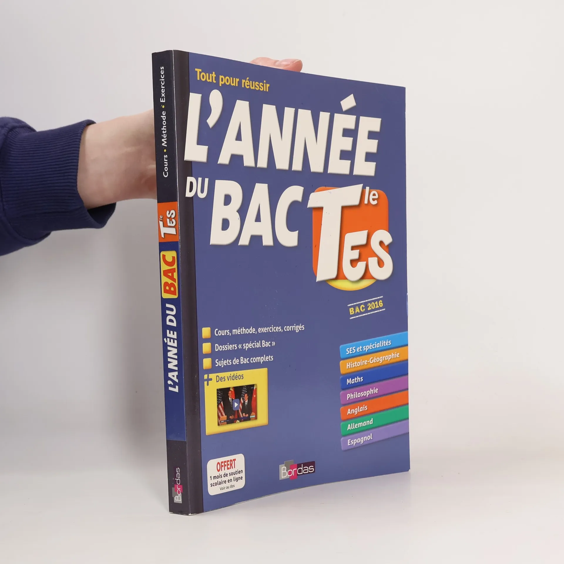 Toutes les matières du programme de la Tle ES réunies dans le même livre. Un ouvrage indispensable pour réussir son année scolaire et préparer les épreuves du Bac. Chaque notion est développée en trois temps : cours, l'essentiel du cours à mémoriser ; méthode, des méthodes et des exemples pour bien comprendre ; exos des exercices pour s'entraîner ; et tous les corrigés à la fin du livre. Par matière : un dossier spécial Bac avec la présentation des épreuves et des conseils de méthode ; un sujet de Bac complet et son corrigé. Des ressources gratuites sur le site.