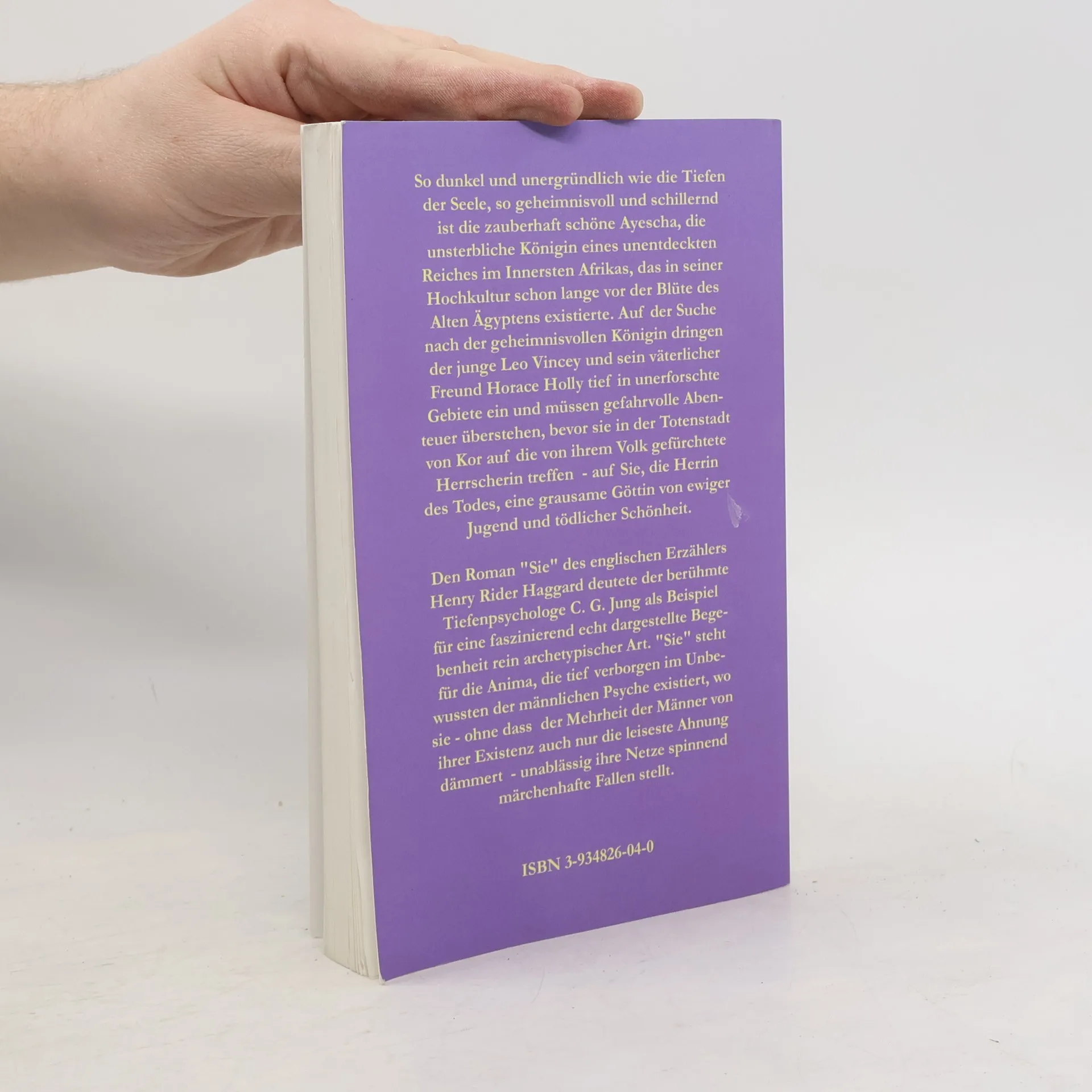 So unergründlich wie die Tiefen der Seele, so geheimnisvoll und schillernd ist die zauberhaft schöne Ayescha, die unsterbliche Königin eines unentdeckten Reiches im Innersten Afrikas, das in seiner Hochkultur schon lange vor der Blüte des Alten Ägyptens existierte. Auf der Suche nach der geheimnisvollen Königin dringen der junge Leo Vincey und sein väterlicher Freund Horace Holly tief in unerforschte Gebiete ein und müssen gefahrvolle Abenteuer überstehen, bevor sie in der Totenstadt von Kor auf die von ihrem Volk gefürchtete Herrscherin treffen - auf Sie, die Herrin des Todes, eine grausame Göttin von ewiger Jugend und tödlicher Schönheit. Den Roman "Sie" des englischen Erzählers Henry Rider Haggard (1856-1925) deutete der berühmte Tiefenpsychologe C. G. Jung als Beispiel für eine faszinierend echt dargestellte Begebenheit rein archetypischer Art. "Sie" steht für die Anima, die tief verborgen im Unbewussten der männlichen Psyche existiert, wo sie - ohne dass der Mehrheit der Männer von ihrer Existens die leiseste Ahnung dämmert - unablässig ihre Netze spinnend märchenhafte Fallen stellt.