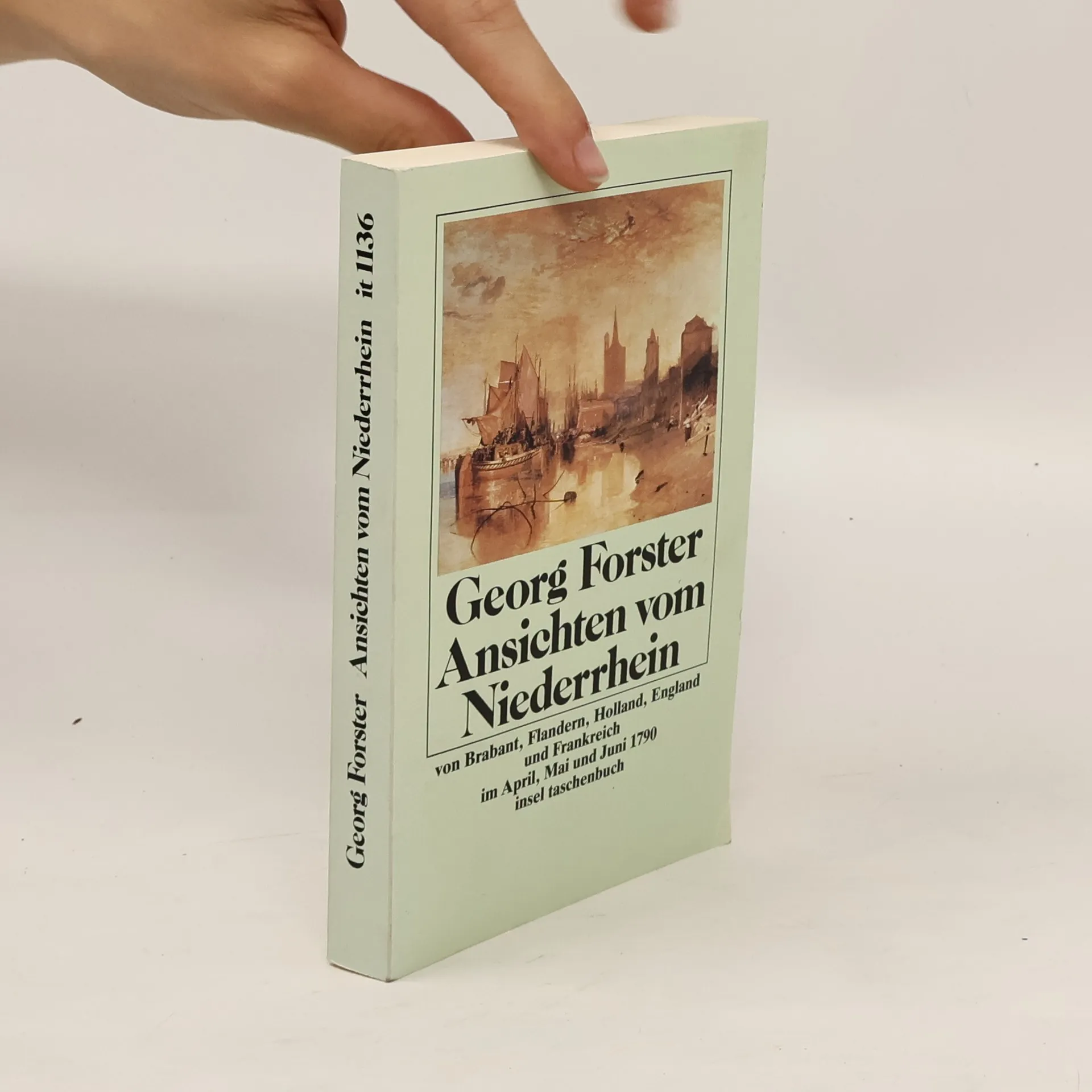 Im Frühjahr 1790 unternahm Georg Forster, begleitet von Alexander von Humboldt, eine Reise durch den Rheingau nach Ehrenbreitstein, Köln, Düsseldorf, Aachen, Lüttich, Brüssel, die Niederlande, England und schließlich Paris. In seinem dreibändigen Werk dokumentierte er seine Beobachtungen. Die Ansichten vom Niederrhein standen lange im Schatten seiner berühmten Voyage Round The World, die er als zwanzigjähriger Begleiter von Captain Cook verfasste. Doch auch hier zeigt sich Forsters Stilsicherheit und Beobachtungsgabe, geschärft durch 15 Jahre Erfahrung in Forschung, Lehre und politischem Engagement. Anders als bei der Cook-Expedition lag Forsters Fokus nicht auf botanischen oder zoologischen Beschreibungen unbekannter Arten. Seine Stärke liegt in der Darstellung der vertrauten nordeuropäischen Landschaften und der Lebensweise der Menschen sowie in der präzisen Analyse des ökonomischen und politischen Zustands der bereisten Länder. Forsters Bericht war auch ästhetisch richtungsweisend: Mit seinen brillanten Beschreibungen von Architektur und Kunst trug er zur Entwicklung der Kunstgeschichte bei und setzte einen stilistischen Maßstab. „Mehr hat man doch nicht, als was einem durch diese zwei Oeffnungen der Pupille fällt und die Schwingungen des Gehirns erregt.“ – Georg Forster