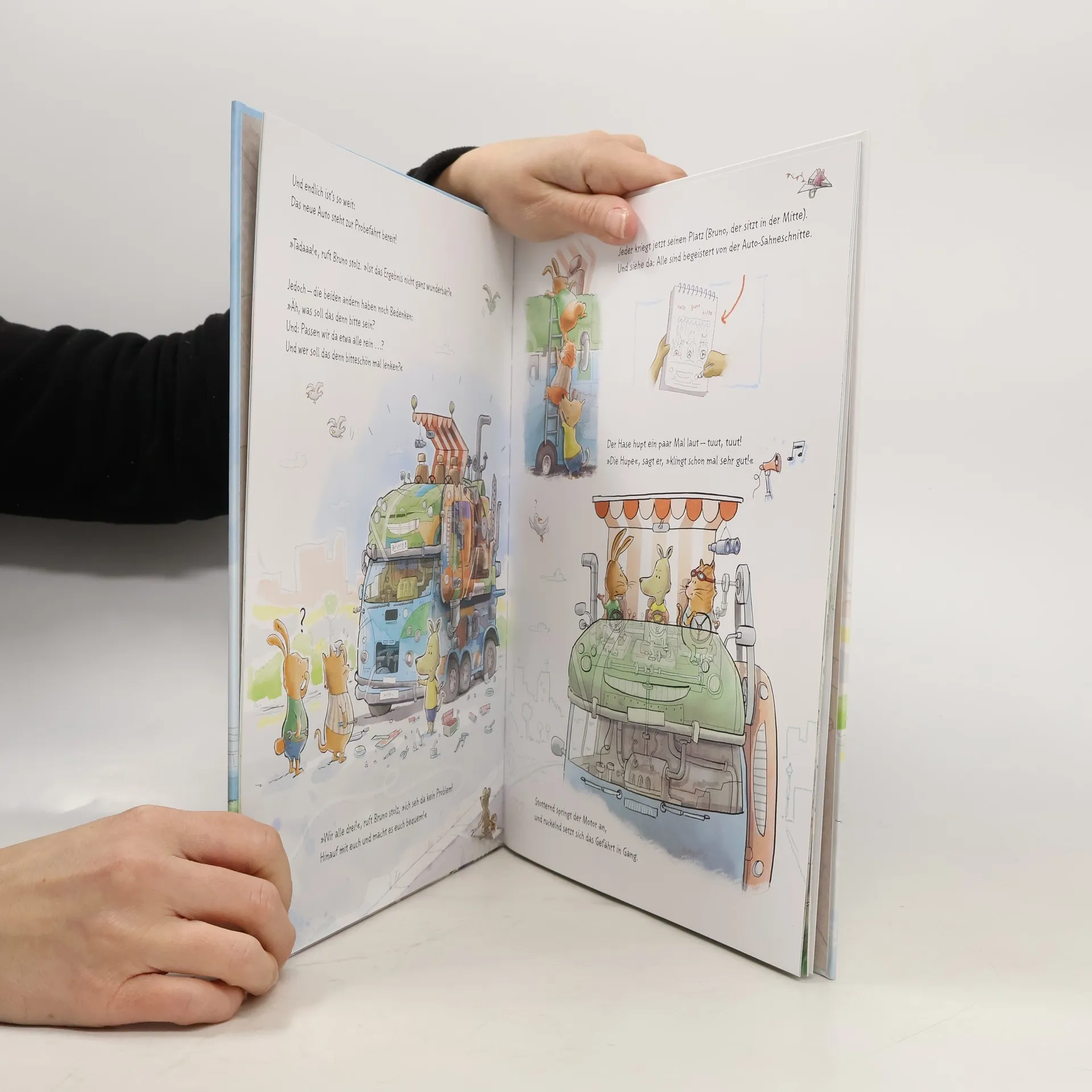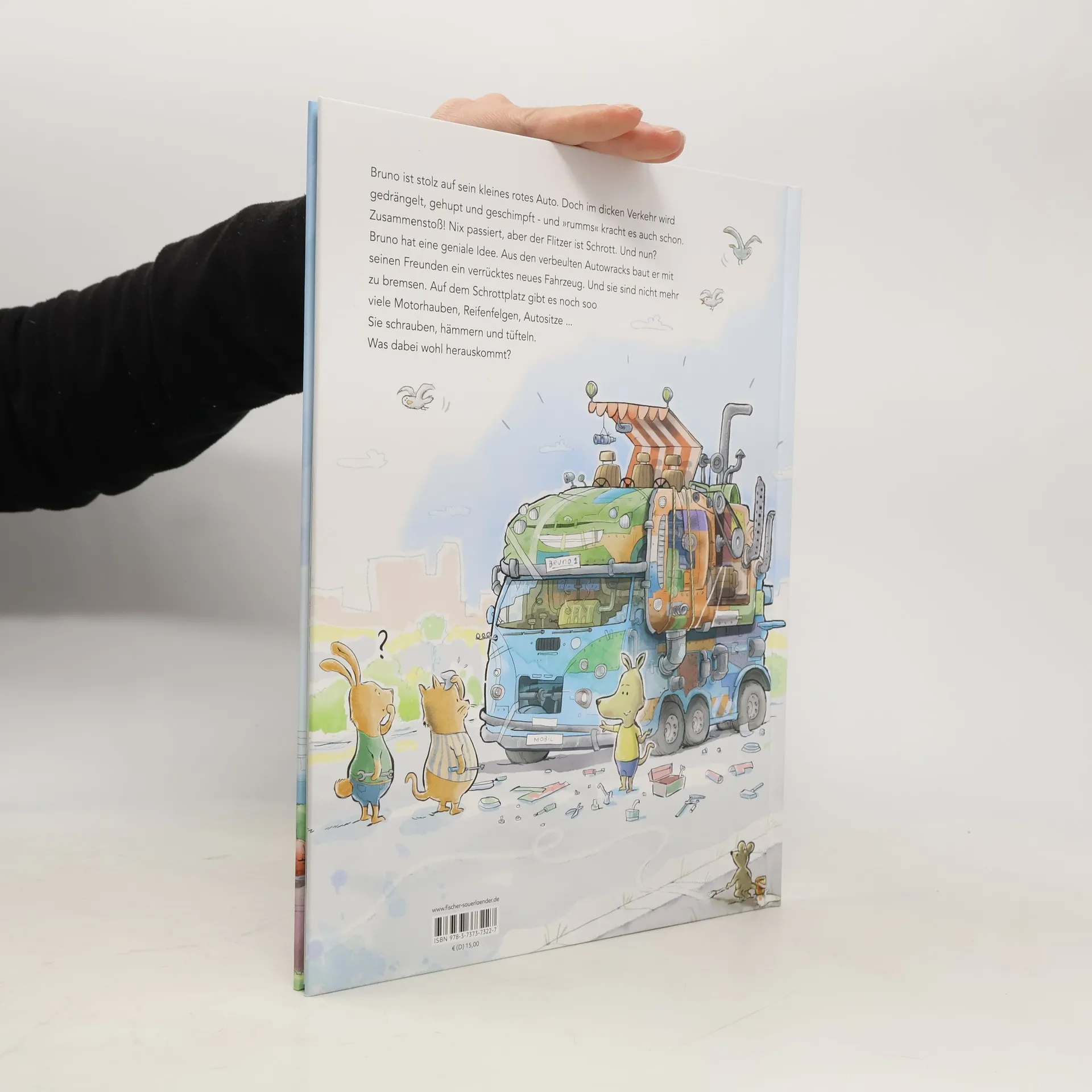 <strong>Das perfekte Bilderbuch zum Vorlesen für Kinder ab 4 Jahren und für die, die von Autos und Fahrzeugen einfach nicht genug bekommen können!</strong> Bruno ist stolz auf sein kleines rotes Auto. Doch im dichten Verkehr wird gedrängelt, gehupt und geschimpft - und »rumms« kracht es auch schon. Zusammenstoß! Nix passiert, aber die Flitzer sind Schrott. Und nun? Bruno hat eine geniale Idee. Aus den verbeulten Autowracks baut er mit seinen Freunden ein verrücktes neues Fahrzeug. Und sie können gar nicht genug davon bekommen. Auf dem Schrottplatz gibt es noch soo viele Motorhauben, Reifenfelgen, Autositze ... Jetzt haben sie mit ihrer tollen Idee noch viele andere angesteckt. Nach unermüdlichem Schrauben, Hämmern und Tüfteln, fährt schließlich ein riesiges, unglaubliches, Fantastisches Mitmach-Mobil durch die Straßen und und alle wollen mitfahren. Die überschäumende Fantasie und die witzigen, detailfreudigen Illustrationen machen diese Vorlesegeschichte für Kinder ab 4 Jahren zu einem besonders lustigen und aufregenden Abenteuer.