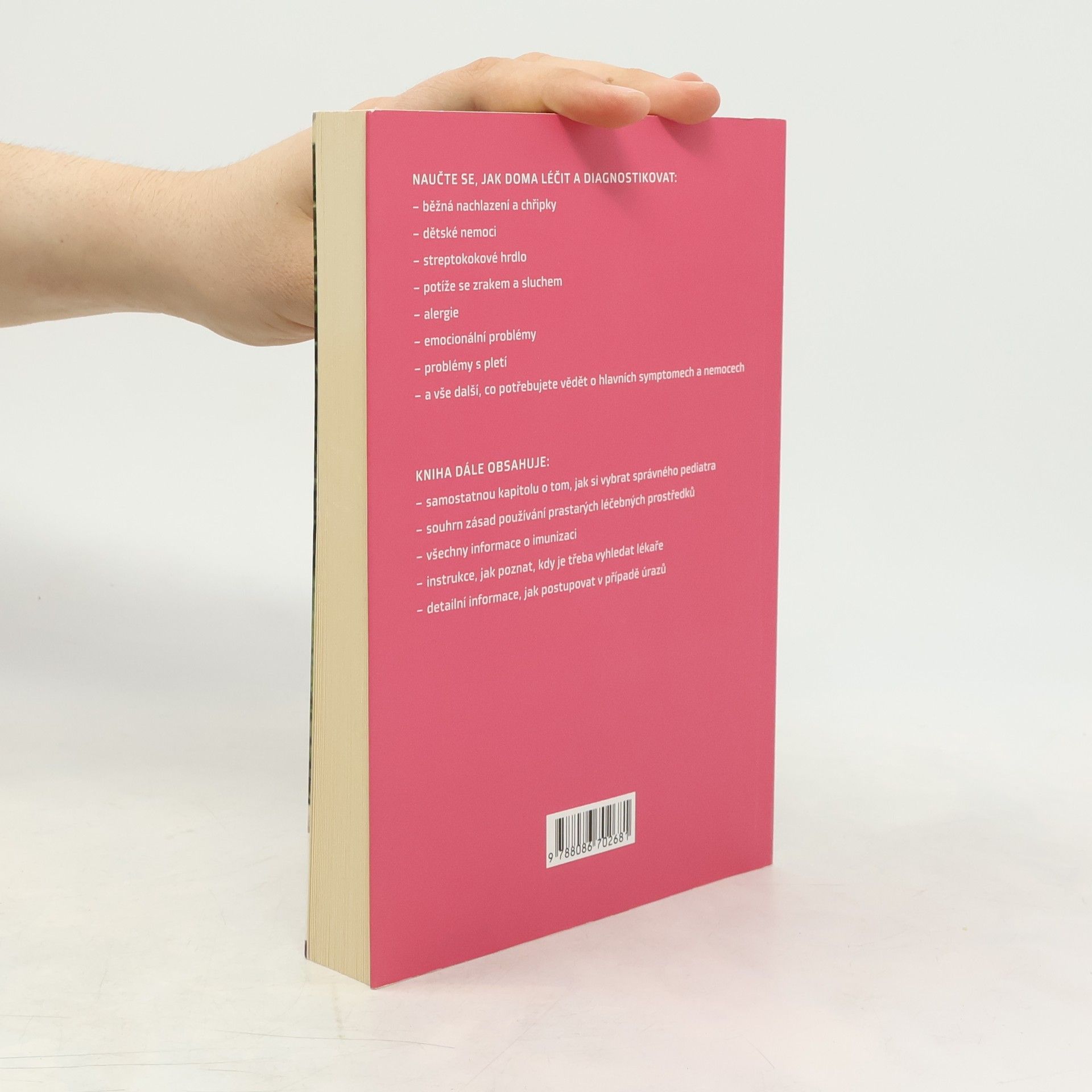 Naučte se, jak /doma/ léčit a diagnostikovat: běžná nachlazení a chřipky, dětské nemoci, alergie apod. Kniha dále obsahuje kapitolu o tom, jak si vybrat správného pediatra, souhrn zásad používání prastarých léčebných prostředků, instrukce, jak poznat, kdy je třeba vyhledat lékaře a detailní informace, jak postupovat v případě úrazů.