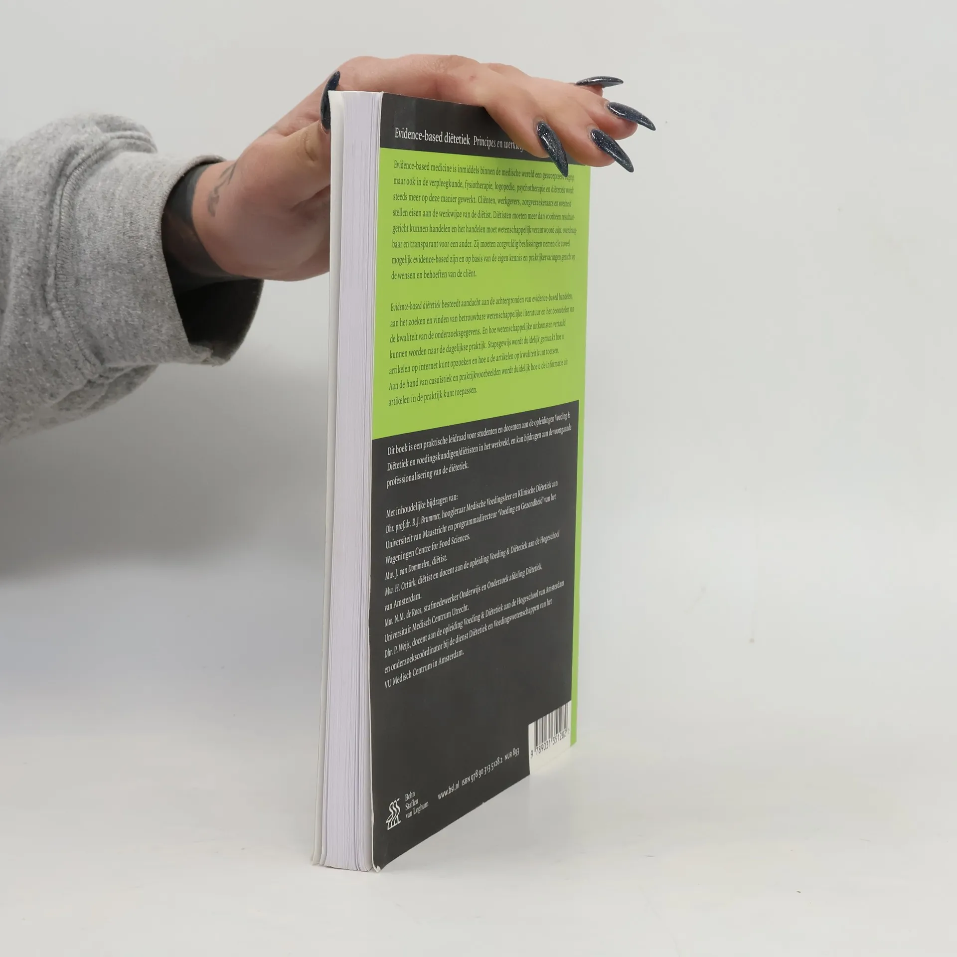 Evidence–based medicine is inmiddels binnen de medische wereld een geaccepteerd begrip, maar ook in de verpleegkunde, fysiotherapie, logopedie, psychotherapie en diëtetiek wordt steeds meer op deze manier gewerkt. Cliënten, werkgevers, zorgverzekeraars en overheid stellen eisen aan de werkwijze van de diëtist. Diëtisten moeten meer dan voorheen resultaatgericht kunnen handelen en het handelen moet wetenschappelijk verantwoord zijn, overdraagbaar en transparant voor een ander. Zij moeten zorgvuldig beslissingen nemen die zoveel mogelijk evidence–based zijn en op basis van de eigen kennis en praktijkervaringen gericht op de wensen en behoeften van de cliënt.Evidence–based diëtetiek besteedt aandacht aan de achtergronden van evidence–based handelen, aan het zoeken en vinden van betrouwbare wetenschappelijke literatuur en het beoordelen van de kwaliteit van de onderzoeksgegevens. En hoe wetenschappelijke uitkomsten vertaald kunnen worden naar de dagelijkse praktijk. Stapsgewijs wordt duidelijk gemaakt hoe u artikelen op internet kunt opzoeken en hoe de artikelen op kwaliteit kunnen worden getoetst. Aan de hand van casuïstiek en praktijkvoorbeelden wordt duidelijk hoe de informatie uit artikelen in de praktijk kunnen worden ingezet.