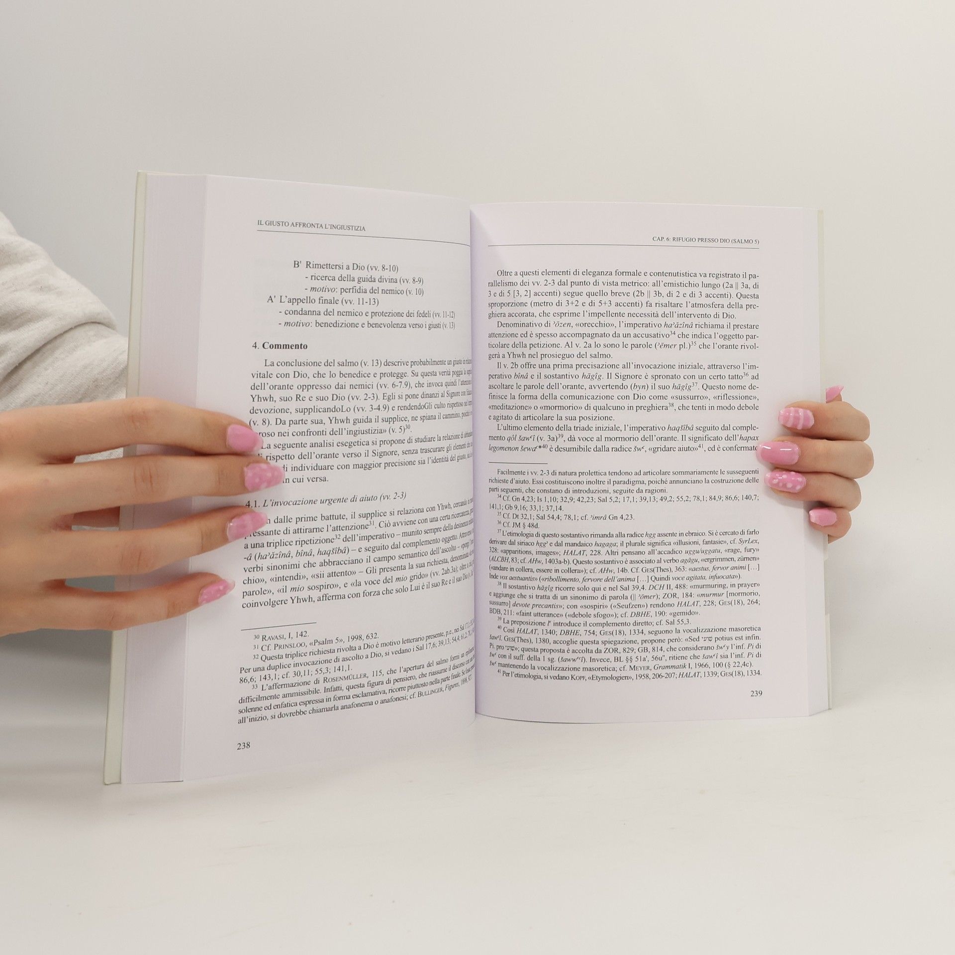 Come essere giusto in un mondo minacciato dall'ingiustizia? Nella presente monografia si illustra una possibile risposta, attraverso l'analisi di otto salmi scelti. L'opera si incentra sulla figura del giusto e su come egli si pone di fronte all'ingiustizia che deriva da situazioni personali o sociali e, piu precisamente, come egli supera l'ingiustizia con una coscienza integra e una fede retta. Lo studio muove dalla riflessione su due ritratti del giusto (Salmi 112 e 101) in cui divengono costitutive, per la giustizia, la dimensione orizzontale e quella verticale. Si affronta, pertanto, l'analisi dei comportamenti che il giusto assume per vincere la tensione con il nemico (Salmi 7, 31 e 55), e il ruolo di Dio nel superare questo rapporto conflittuale (Salmi 5, 15, 34). Il giusto [a] antepone a ogni forma d'ingiustizia il proprio legame con Dio, vincendo le tentazioni della ricchezza illecita e della connivenza col malvagio [a]. Conservarsi integro e l'unico modo per essere approvato da Dio e per affrontare le difficolta della vita. [a] Yhwh non e un Dio silenzioso, ma un Dio che si schiera con il debole maltrattato, che dimostra la sua vicinanza alle persone affrante e preserva l'incolumita del giusto.