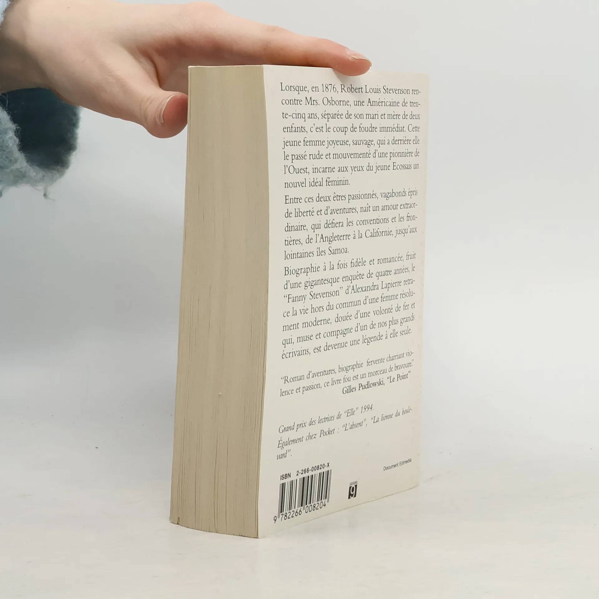 Lorsque, en 1876, Robert Louis Stevenson rencontre Mrs. Osborne, une Américaine de trente-cinq ans, séparée de son mari et mère de deux enfants, c'est le coup de foudre immédiat. Cette jeune femme joyeuse, sauvage, qui a derrière elle le passé rude et mouvementé d'une pionnière de l'Ouest, incarne aux yeux du jeune Ecossais un nouvel idéal féminin. Entre ces deux êtres passionnés, vagabonds épris de liberté et d'aventures, naît un amour extraordinaire, qui défiera les conventions et les frontières, de l'Angleterre à la Californie, jusqu'aux lointaines îles Samoa. Biographie à la fois fidèle et romancée, fruit d'une gigantesque enquête de quatre années, le " Fanny Stevenson " d'Alexandra Lapierre retrace la vie hors du commun d'une femme résolument moderne, douée d'une volonté de fer et qui, muse et compagne d'un de nos plus grands écrivains, est devenue une légende à elle seule. " Roman d'aventures, biographie fervente charriant violence et passion, ce livre fou est un morceau de bravoure. " Gilles Pudlowski, " Le Point " Grand prix des lectrices de " Elle " 1994.