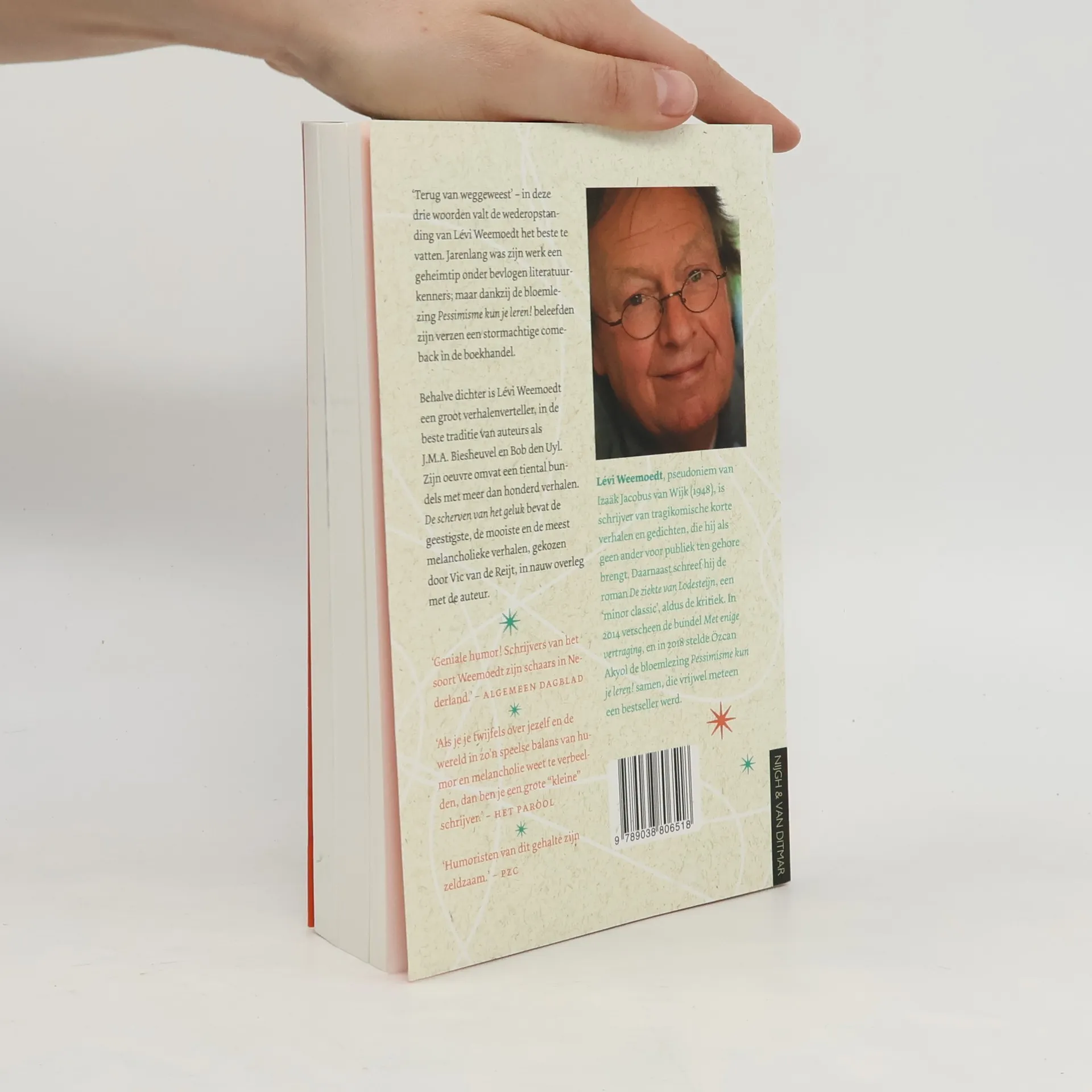 'Terug van weggeweest' - in deze drie woorden valt de wederopstanding van Lévi Weemoedt samen te vatten. Jarenlang was zijn werk een geheimtip onder bevlogen literatuurkenners, maar dankzij de bloemlezing Pessimisme kun je leren! beleefden zijn verzen een stormachtige comeback in de boekhandel. Behalve dichter is Lévi Weemoedt een groot verhalenverteller, in de beste traditie van auteurs als J.M.A. Biesheuvel en Bob den Uyl. Zijn oeuvre omvat een tiental bundels met meer dan honderd verhalen. De scherven van het geluk bevat de geestigste, de mooiste en de meest melancholieke verhalen, gekozen door Vic van de Reijt, in nauw overleg met de auteur.
