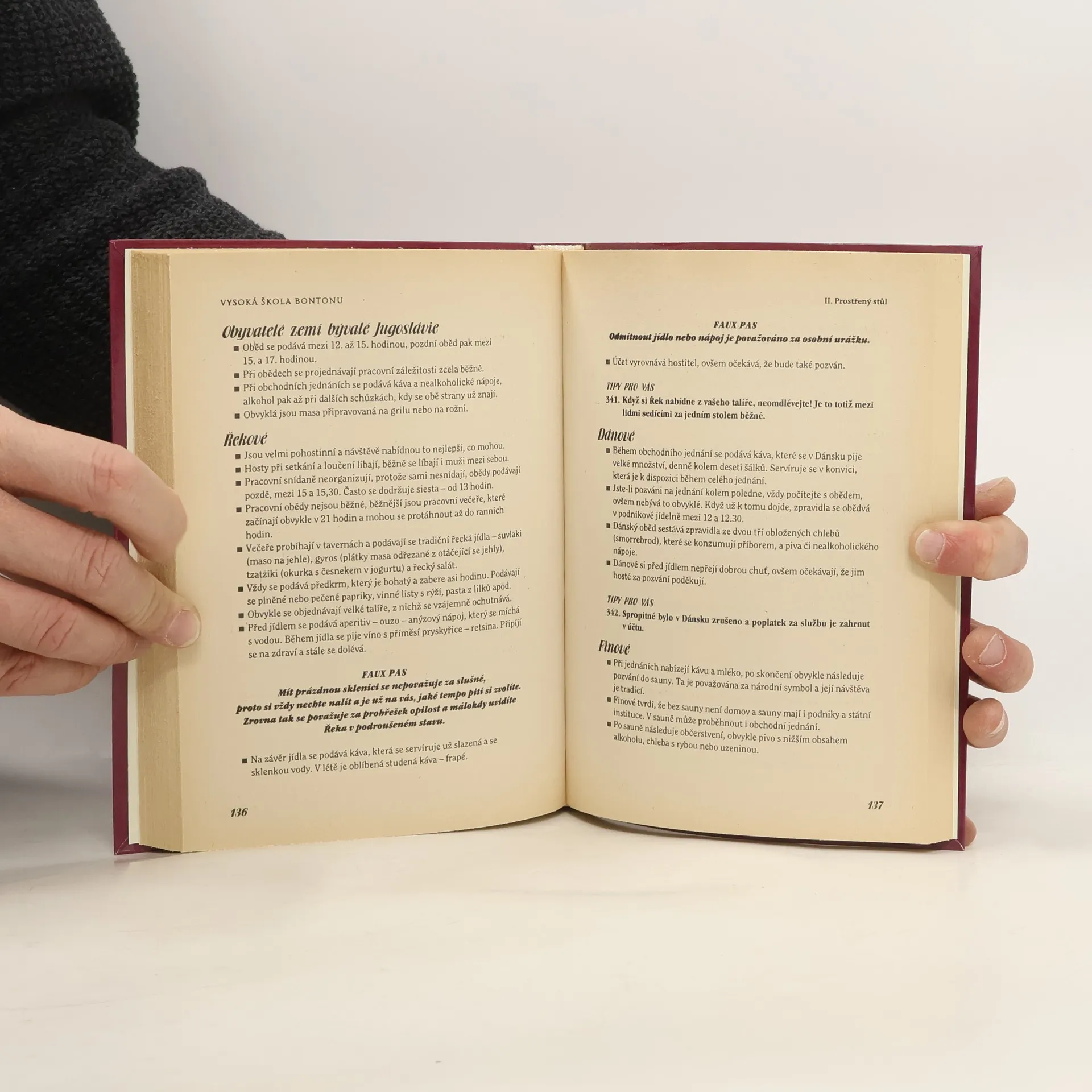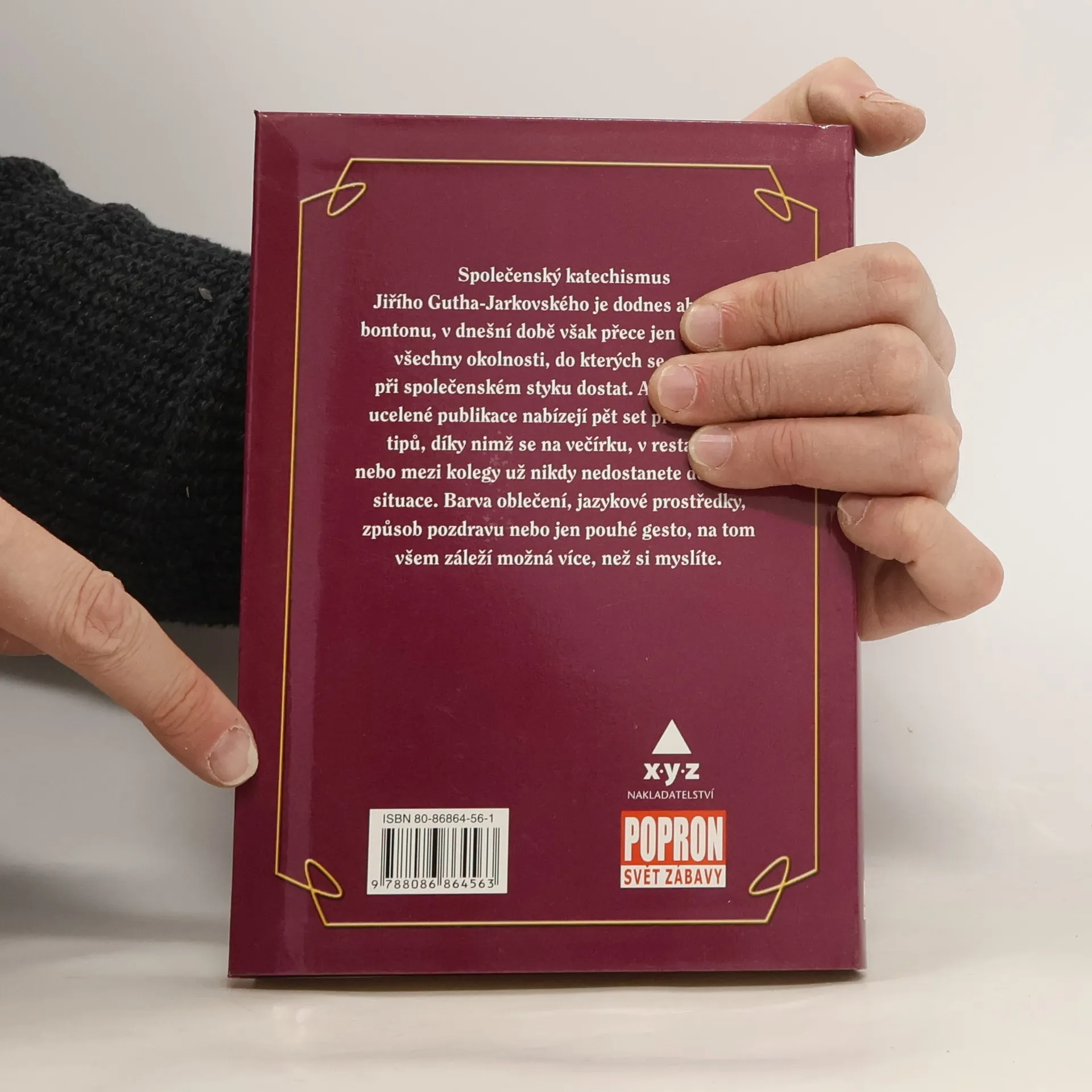 Společenský katechismus Jiřího Gutha-Jarkovského je dodnes abecedou bontonu, v dnešní době však přece jen nepokrývá všechny okolnosti, do kterých se můžete při společenském styku dostat. Autorky nové ucelené publikace nabízejí pět set přehledných tipů, díky nimž se na večírku, v restauraci nebo mezi kolegy už nikdy nedostanete do trapné situace. Barva oblečení, jazykové prostředky, způsob pozdravu nebo jen pouhé gesto, na tom všem záleží možná více, než si myslíte