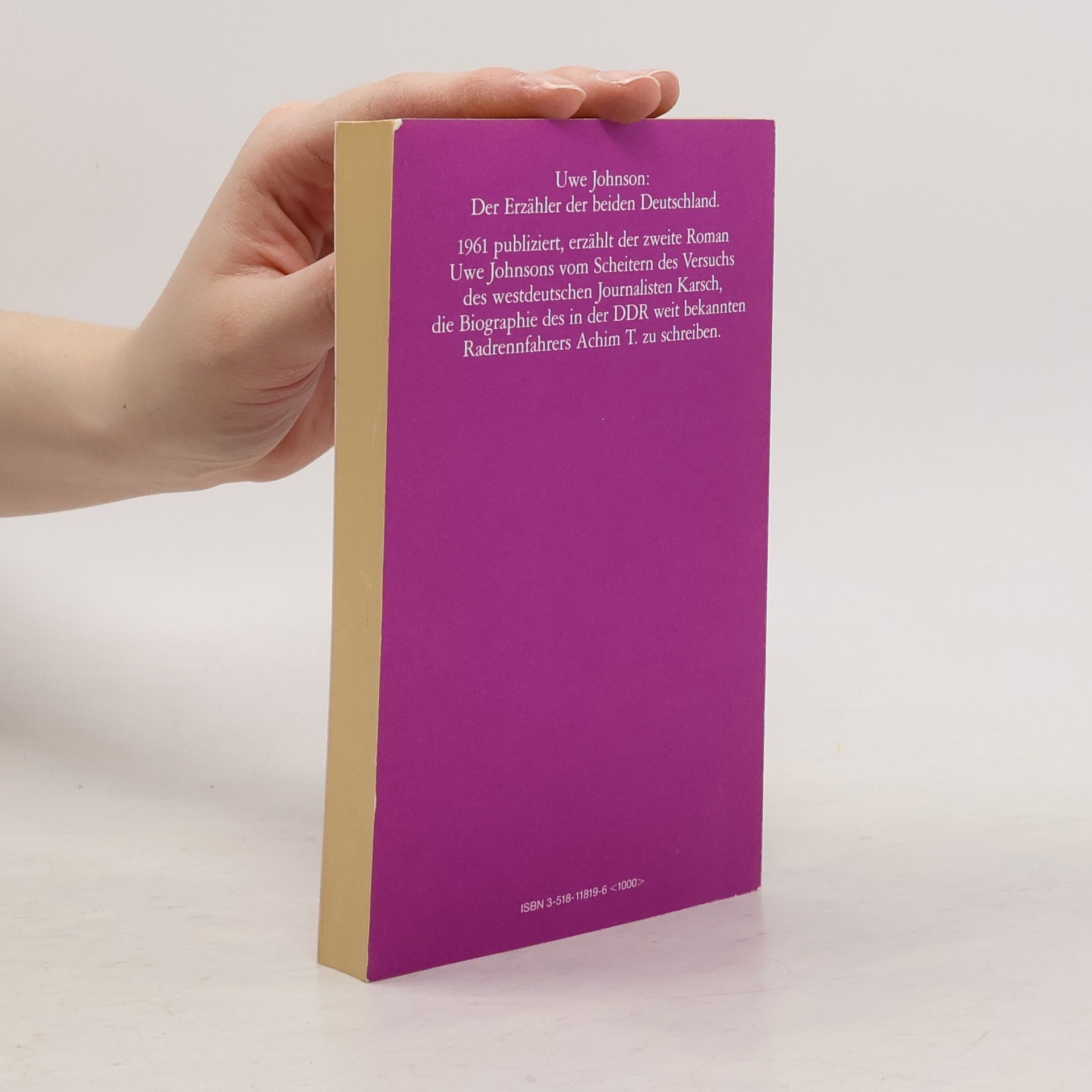 Im Jahre 1961, kurz vor dem Bau jener Mauer, die Ost- und West-Berlin voneinander abschnitt und die Grenze durch Deutschland zu einer militärisch bewachten werden ließ, veröffentlichte Uwe Johnson Das dritte Buch über Achim. Nach seinen Motiven befragt, erklärte er, er habe sich zur Niederschrift dieses Romans entschlossen, »weil ich dachte, daß die Teilung Deutschlands in bestimmten Aspekten für die Teilung der Welt repräsentativ wäre, und weil ich glaube, daß die Konfrontation zweier Lebensweisen, zweier verschiedener Kulturen, zweier verschiedener Wirtschafts- und Regierungsformen – und ich bin von der Gegensätzlichkeit dieser Unterschiede überzeugt – die Wahl verdeutlichen könne, vor die wir gestellt sind.« Diese Differenz erlebt der Hamburger Journalist Karsch, der eine Biographie des in der DDR bekannten Radrennfahrers Achim T. schreibt. Zwei Biographien über diesen großen Sportler sind bereits erschienen. Doch der Versuch Karschs, das Leben und die Überzeugung von Achim T. zu eruieren, scheitert, seine Kategorien greifen nicht, sie stoßen bei dem, dessen Leben es zu beschreiben gilt, auf Unverständnis.
